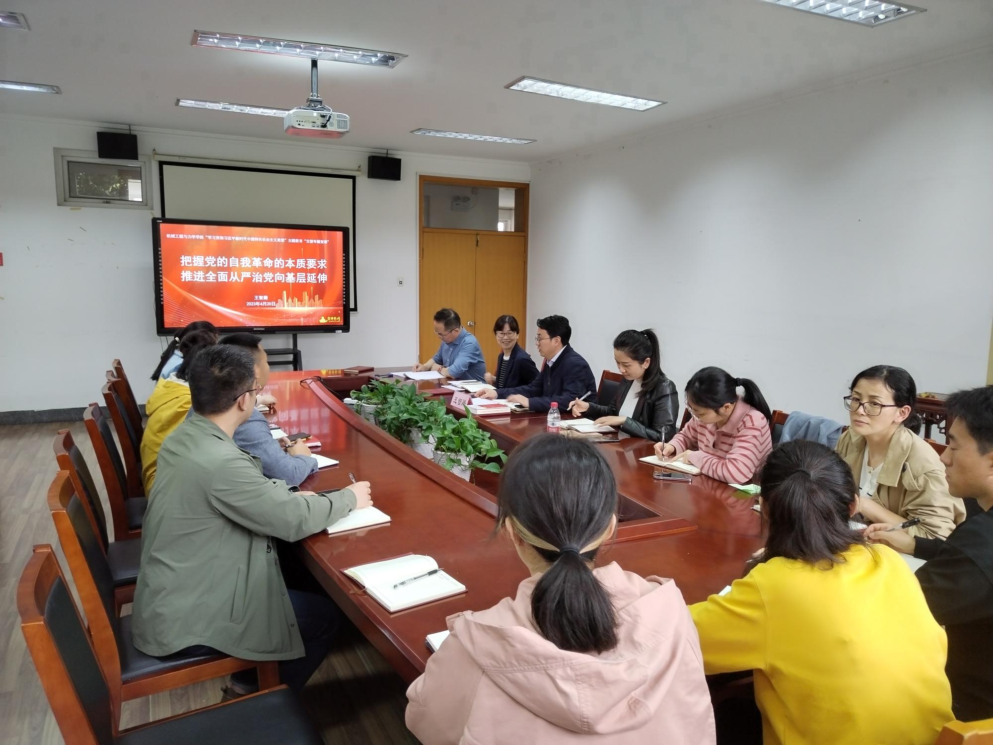 行政实验教工党支部举办学习贯彻习近平新时代中国特色社会主义思想主题教育第一次集中学习会。会议主题是“把握党的自我革命的本质要求 推进全面从严治党向基层延伸”。行政实验教工党支部全体党员参加,学院全体辅导员列席。