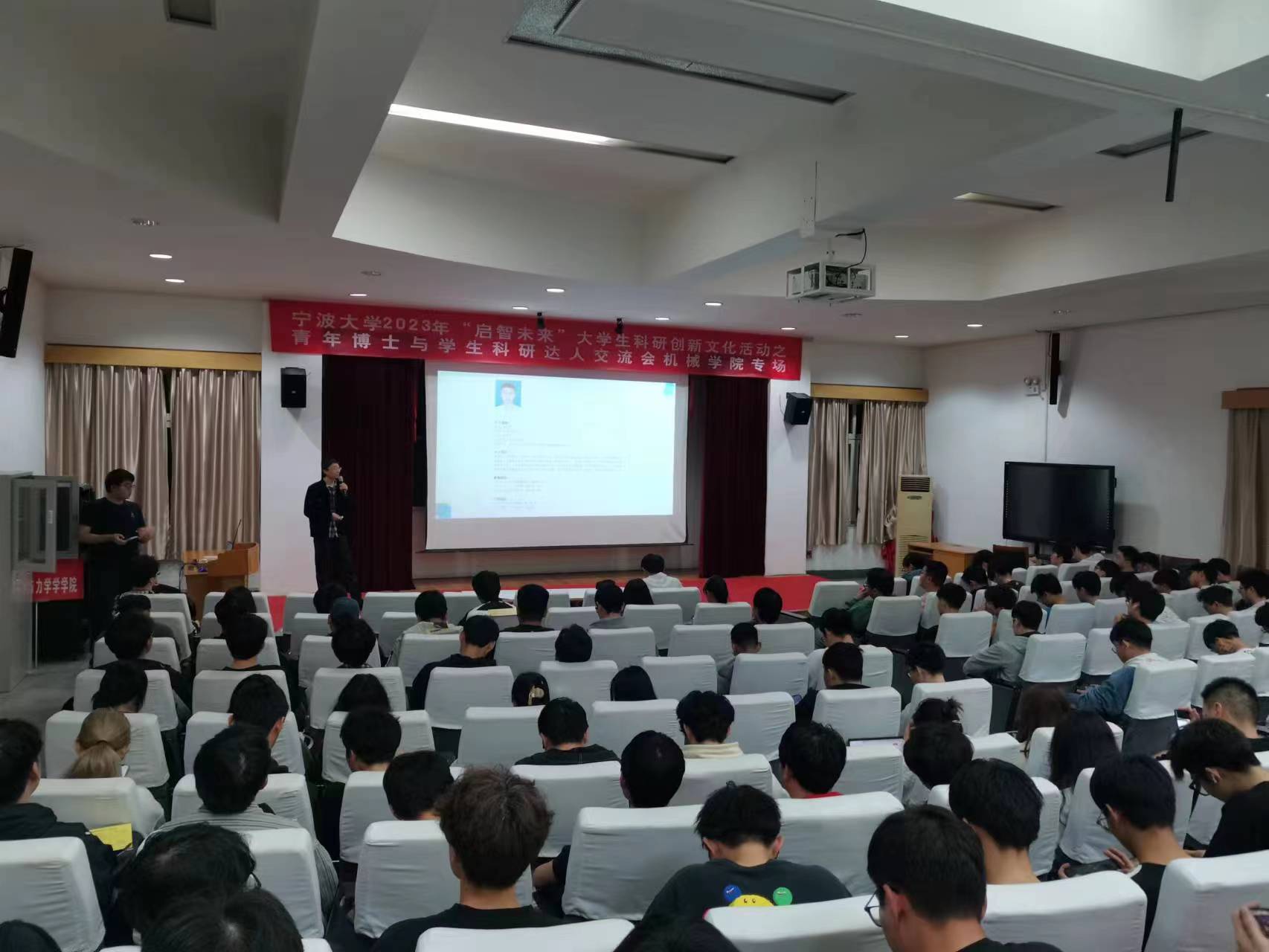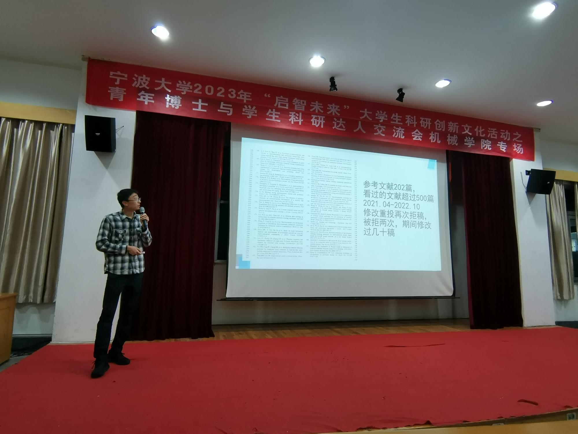 活动现场,特邀机械学院副教授、硕士生导师李子轩老师担任主讲人。李老师以《我在宁大七年求学的点滴故事》为主题,结合“权威需要被质疑吗?”和“一篇从无到有的论文需要花费多少精力?”》两个话题,讲述了在宁大七年硕博求学期间偶然发现无损检测X射线应力测定方法中国家标准错误和一份权威期刊中的公示推导错误背后孜孜不倦探寻的故事,向在场学子表达科研的严谨求学态度和实事求是精神。同时,围绕自身在美国参加学术会议的遭遇与参加学校汉语角活动的经历,告诉大家学好英语的重要性,鼓励大家重视外语学习,做到交流时听得懂,说得出。此外,他还结合本硕博和博士后的求学历程,向在场学生表示要勇于自我突破,跳出舒适圈,向着学涯的更高层次迈进。活动期间,李子轩老师还和学弟学妹们围绕本科生发表文章的必要性、留学交换的意义、读研学校与专业的选择等话题进行了探讨。为期一个多小时的分享交流活动,为在场170多名学院学子有力展示了科研求索与积极进取的魅力,同学们纷纷表示收获多多,干货满满。