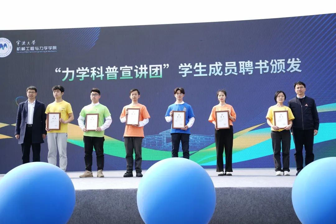 为加强学科文化的宣传,将力学科普知识送进更多的大中小学,建设力学科普示范基地,机械学院力学专业的师生成立“力学科普宣讲团”,他们通过开设选修课程、运维力学科普公众号、开展力学科普宣传、组织力学学科竞赛等方式致力于传播力学科普知识,培育力学学科文化。活动现场,机械学院党委书记王智腾和党委宣传部副部长王湖清为宣讲团师生颁发聘书。