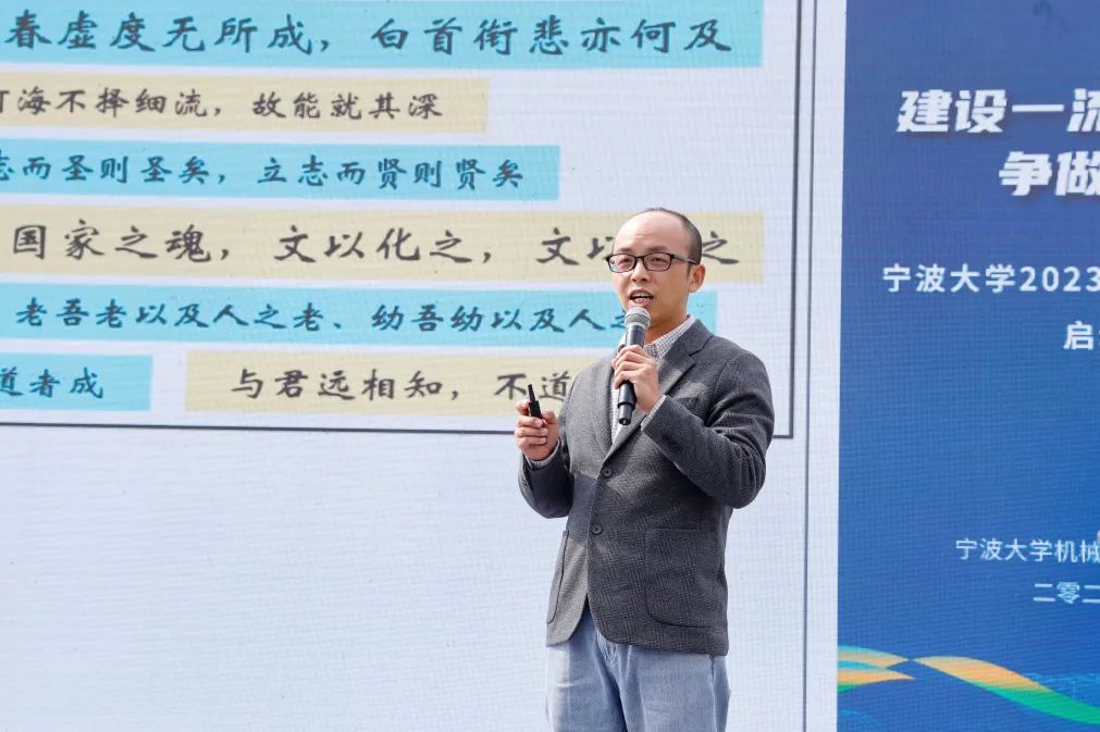赵全军代表学校向2023年力学文化节的启动表示热烈祝贺,向到场嘉宾表示衷心感谢。赵全军指出,文化兴则学科盛,文化浓则学科强。学科文化是学科的灵魂,是学科发展过程中形成的内在软实力。2022年,结合力学学科建设发展需求,学校开展了一系列重大活动,全方位、深层次、多角度、系统性展示了宁大力学学科三十余年来的历史发展沿革和建设历程,以及在人才培养、科学研究、社会服务和文化传承等方面取得的成绩,繁荣兴盛了宁大力学学科文化。赵全军强调,要通过此次力学文化节的组织开展,更加坚定初心,传承发扬钱学森、朱兆祥、王礼立等老一辈力学科学家的精神,在历史中汲取奋进的力量,进一步面向未来,凝聚共识,师生同心,在全力推进“双一流”学科建设的进程中奋楫争先、担当作为,用实际行动将立德树人的教育根本任务落到实处,推动力学学科不断创新与跨越发展,为实现学校高质量内涵式发展提供强大的文化源动力和精神支撑。