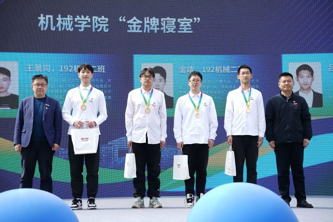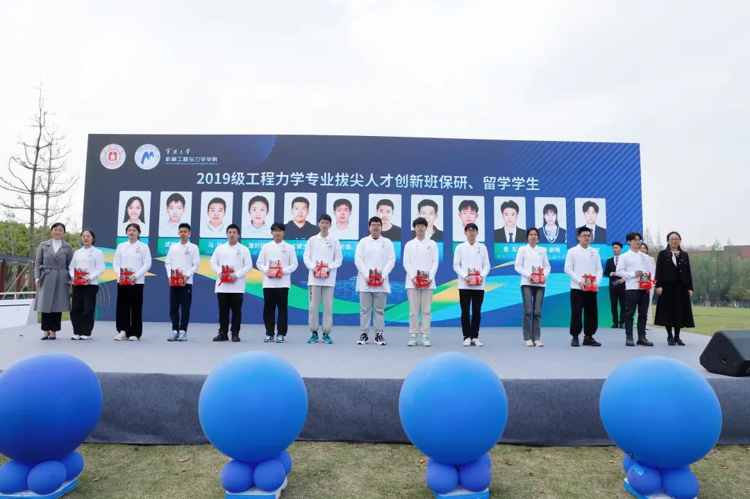 今年,2019级工程力学专业拔尖人才创新班的17名同学被海内外知名高校录取,升学率达51.52%。甬江公寓1号楼612宿舍来自机械国贸和机械工程专业的4名男生在今年的硕士研究生招生考试中全部顺利上岸,成为当之无愧的“金牌寝室”。他们以青春之我担时代之责,跑出了一流好成绩,跑好了一流学科建设“接力赛”。现场,教务处处长李国平和研究生院执行院长、研工部部长王闯为“金牌寝室”赠送优良学风奖牌。学生处副处长、学工部副部长朱燕和机械学院副院长张明华为工程力学专业拔尖人才创新班保研、留学的学生赠书。
