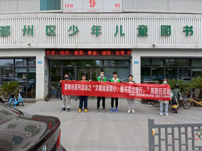 机械学院联合鄞州区少年儿童图书馆开展了雷锋月系列活动之“文明润泽我心,图书指点我行”主题党团日活动。院团委学生会,217机械国贸团支部,共6名志愿者参加活动。