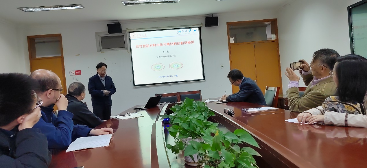 3月17日下午,浙江大学航空航天学院王杰教授应实验室邀请,在绣山工程大楼208会议室作了题为《铁性智能材料中拓扑畴结构的相场模拟》的学术报告。报告由51吃瓜网