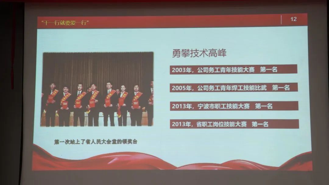范先生讲述了自己从一名职专生到焊接班长再到经理的青春奋斗故事,用实际行动告诉同学们,通过奋斗才能做到行业的顶尖,创造美好的未来。“干一行就要爱一行”,既然选择了焊接,即使身体上有很多劣势,也坚持去学习和热爱,热爱且尊敬自己所从事的行业。范丽锋先生向我们讲述,在他取得一次次奖项和荣誉之后,他通过找寻自己的初心,让自己能过够继续成长,不断取得更高的荣誉和成绩,这点也让同学们充分认识到初心的重要性。