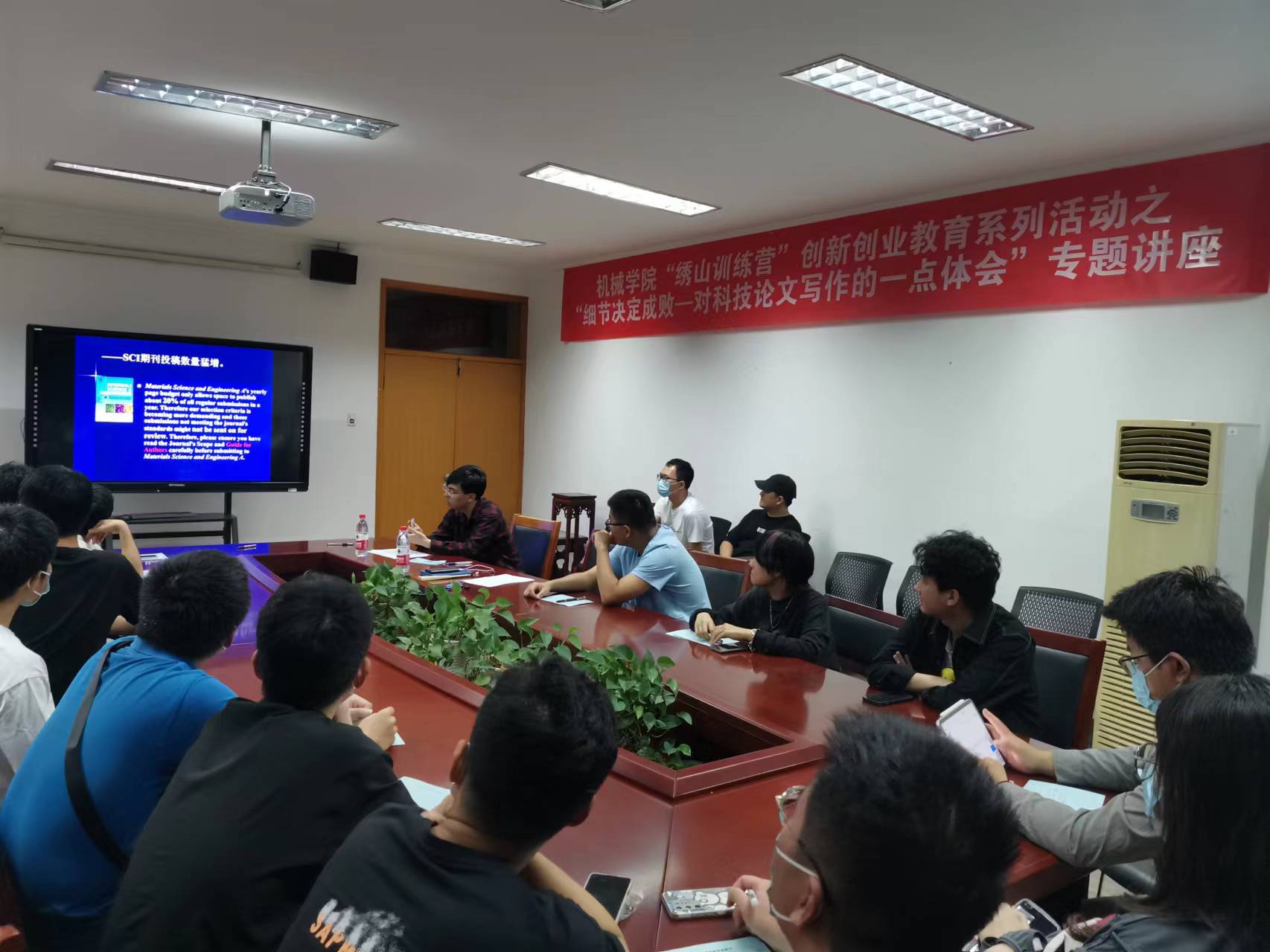 为进一步提升学生科研论文撰写水平与质量,培育高级别学生科研创新成果,9月26日晚,机械学院“绣山训练营”创新创业教育系列活动之“细节决定成败—对科技论文写作的一点体会”专题讲座在绣山工程楼208会议室举行。