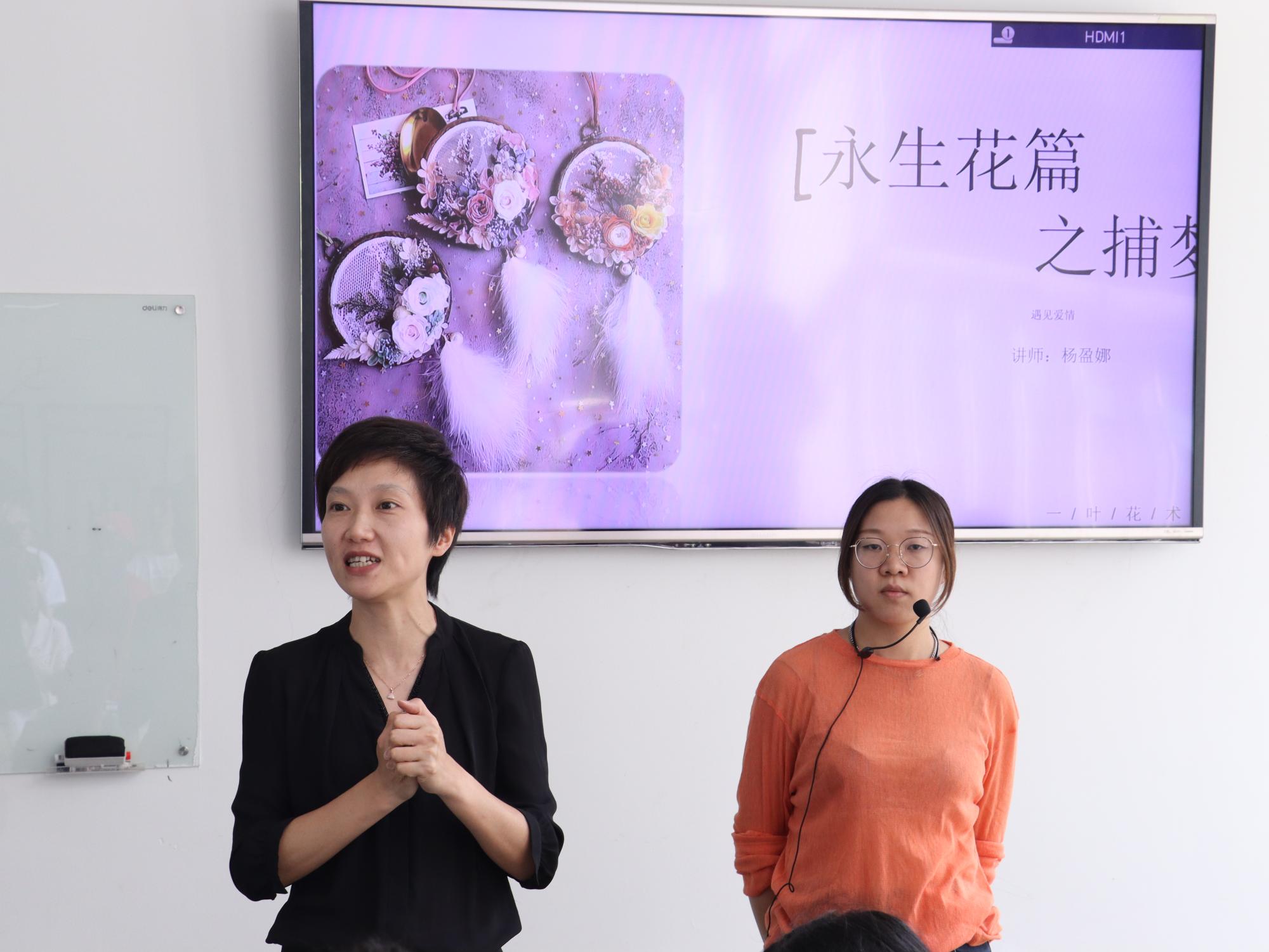 本次活动,邀请专业老师现场指导,分为永生花车挂和桃山皮月饼手工制作两个会场。以花为媒,相伴到老,用一枚小巧的永生花车挂圈住时光,花永生,爱永恒。在老师的讲解和演示下,大家根据自己的喜好、创意,将主花和配草小心翼翼地粘在捕梦网上,巧手制作出自己满意的作品。教学老师准备好了五彩“冰皮”和多味果馅,大家一边学习一边揉面、包馅儿、压模。一块块果味浓郁、香甜可口的流心月饼就完成了。“万物可爱”、“保持绿码”、“中秋快乐”,一块块小小的月饼体现了师生们心中的美好祝愿。最后,老师和学生们手持“作品”合影留念,现场其乐融融。