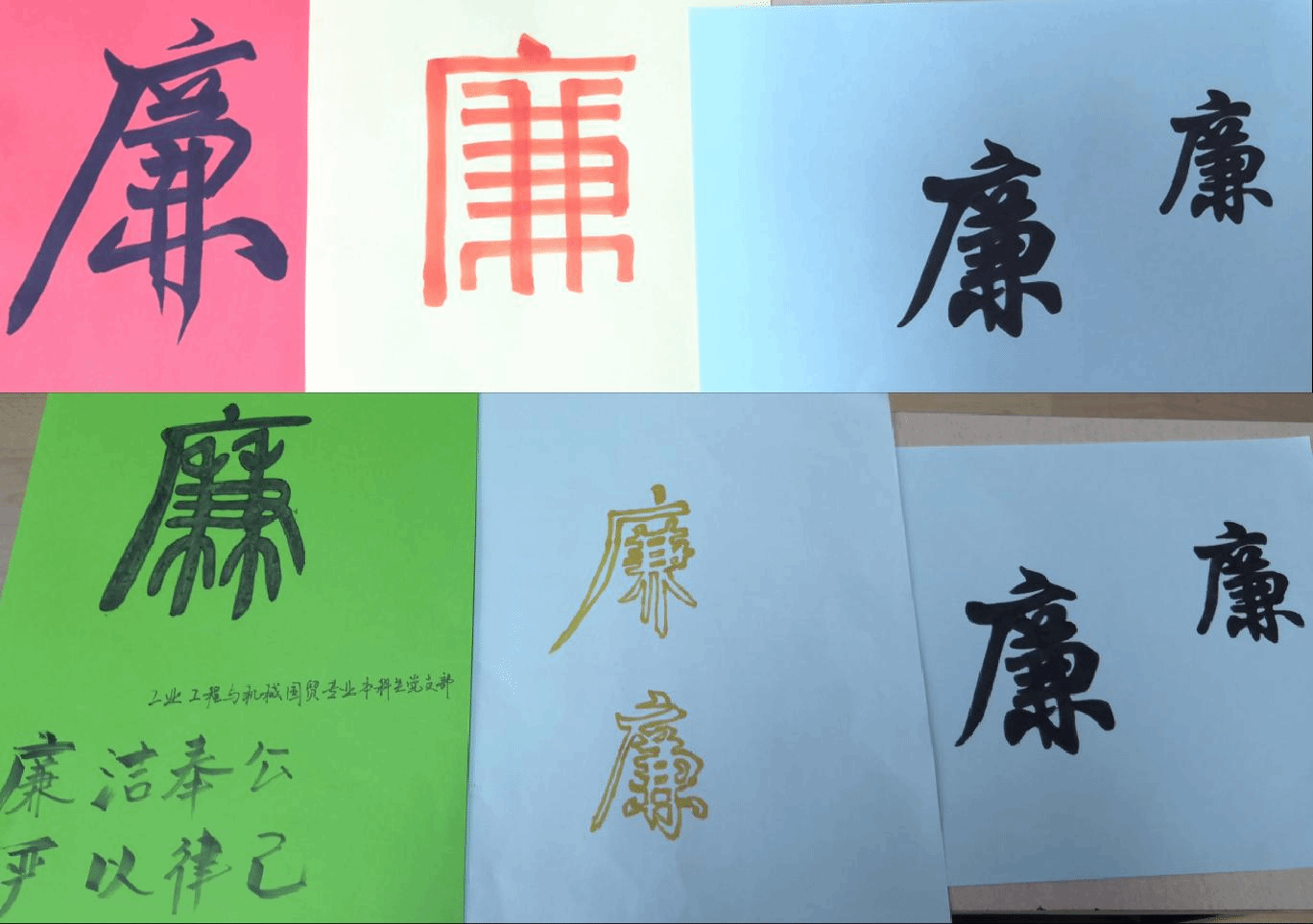 活动中,党员同志们手写“廉”字,风格不同、形态各异,此次活动不仅将廉洁教育融入传统节日,推动了党史学习教育常态化、长效化,也推动了传统文化的继承,让端午佳节飘满粽香的同时,也飘出廉洁过节的清风正气。接下来,工业工程与机械国贸专业本科生党支部将继续坚持以“廉洁文化”育人,以“廉洁活动”化人,教育引导广大党员同志树立廉洁意识,为学院事业高质量发展注入新的动力,以实际行动迎接党的二十大胜利召开!