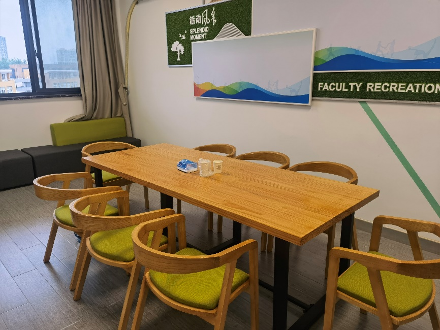 机械学院教工之家现位于宗瑞楼504室,分里外两间间,外间为乒乓球室,供学院教职工日常运动使用;里屋为休息区,配有桌椅沙发等,同时教工小家内还备有棋牌毽子跳绳等文体用具,可供学院老师日常交流娱乐使用。