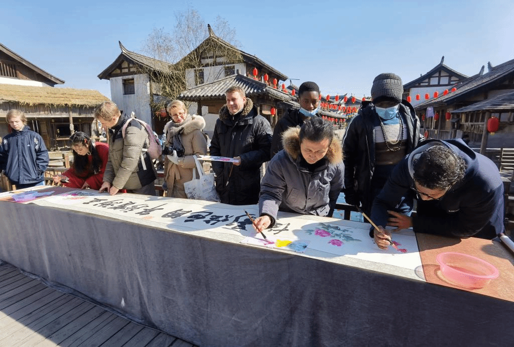 机械学院抓住元旦这一文化教育契机,通过在影视城画国画、写书法、体验民俗与影视文化等活动,加深了留学生的爱校情感,增强了来华留学生对中国文化的了解与认同,更培养了来华留学生“知华、友华、爱华”的情怀。