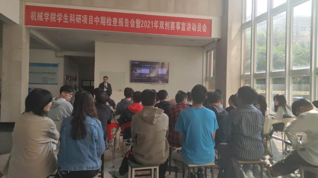 为充分了解学生科研项目进展情况,遴选优质项目参加来年双创赛事,10月28日下午,机械学院在绣山工程楼一楼大厅举行2020年学生科研项目中期检查暨2021年双创赛事动员宣讲会。活动邀请梁丹、张方圆、金育安、卢梦凯4位老师和2019年“挑战杯”国赛一等奖获得者朱帅同学担任评审嘉宾。