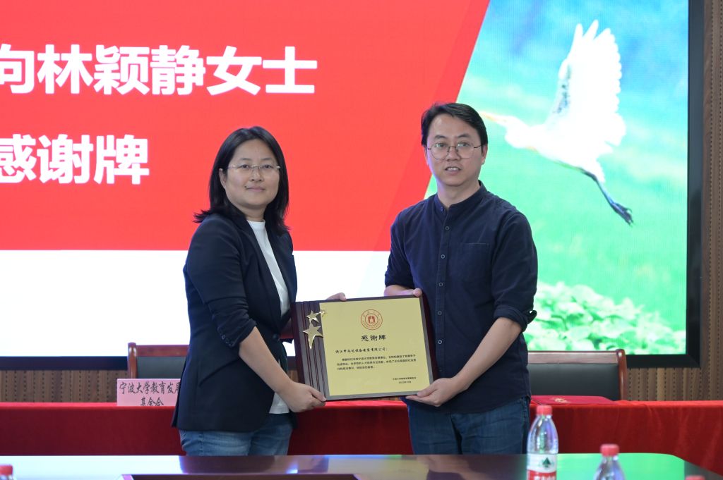 “申永达助学金”捐赠协议书。随后,王书记向林女士赠送感谢牌。