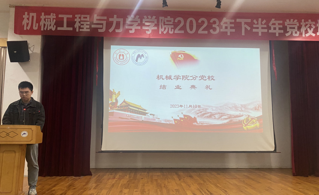 于绣山工程楼三楼报告厅举行了预备党员培训班和发展对象培训班结业典礼。学院党委副书记、纪委书记、分党校副校长沈妍伶老师、学生党建中心主任褚慧丽老师、学院团委书记晏程程老师、研究生辅导员潘晶婧老师、就业指导中心主任陈乐鸣老师、辅导员潘婧老师出席了本次典礼。本次典礼由学生党建中心干事敖是存主持。