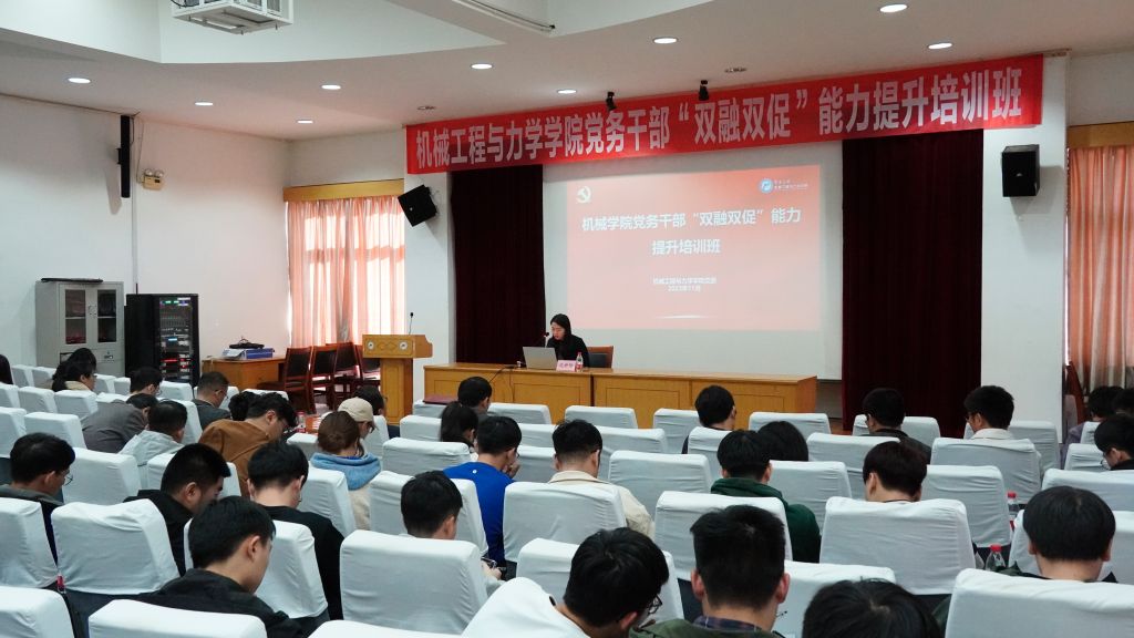 11月22日下午,机械学院党务干部“双融双促”能力提升培训班在绣山工程大楼三楼报告厅如期开班。学院全体师生党务干部共100余人参加培训。