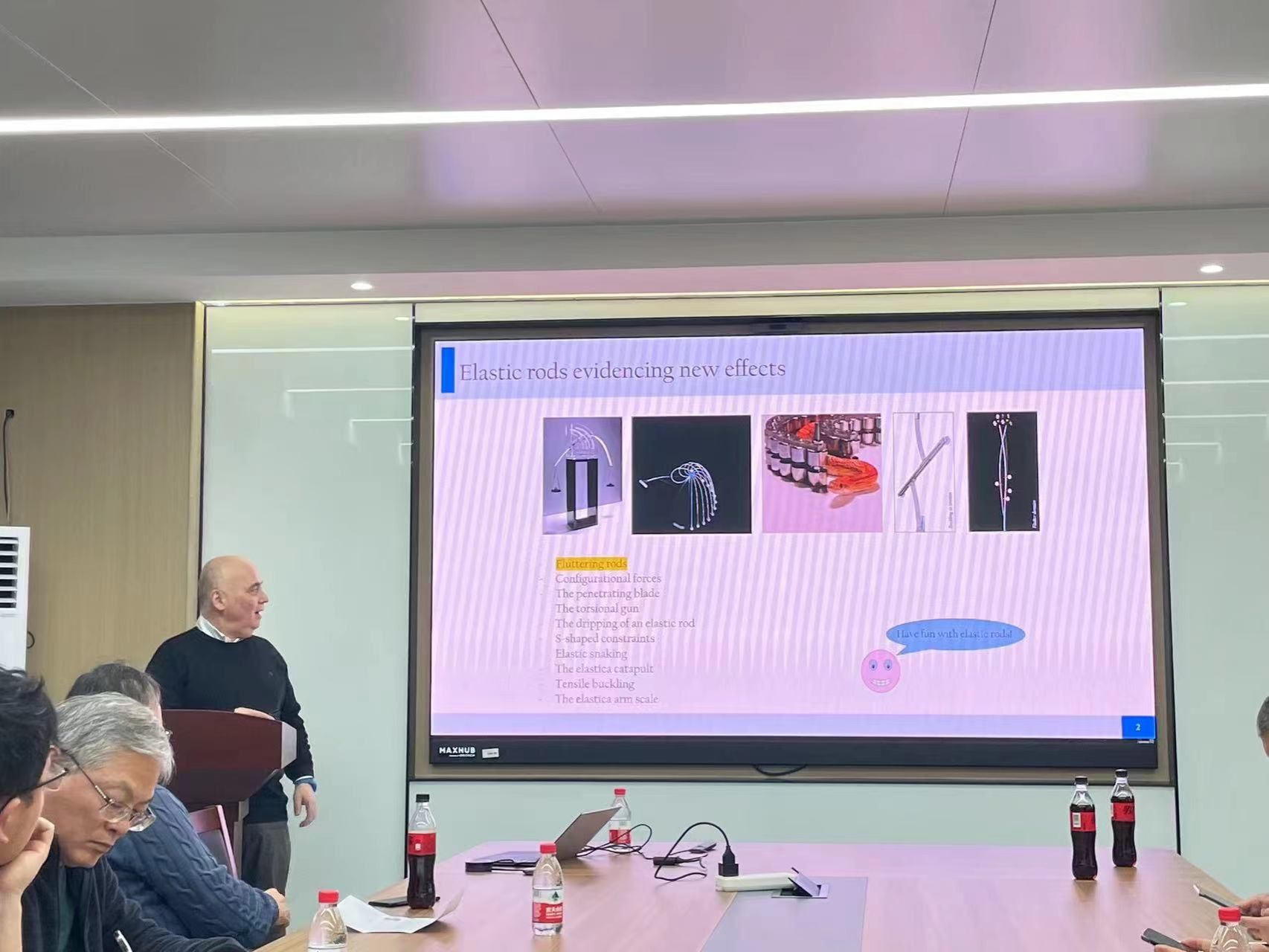 报告伊始,David Bigoni教授介绍了失稳现象,通过实验过程中的图片、视频等依据,Bigoni教授进一步研究了在保守系统下出现颤振失稳、霍普夫分岔、耗散不稳定性和齐格勒悖论的可能性,并且探讨了两个结构分别稳定但“融合”后产生的新型颤振失稳问题。