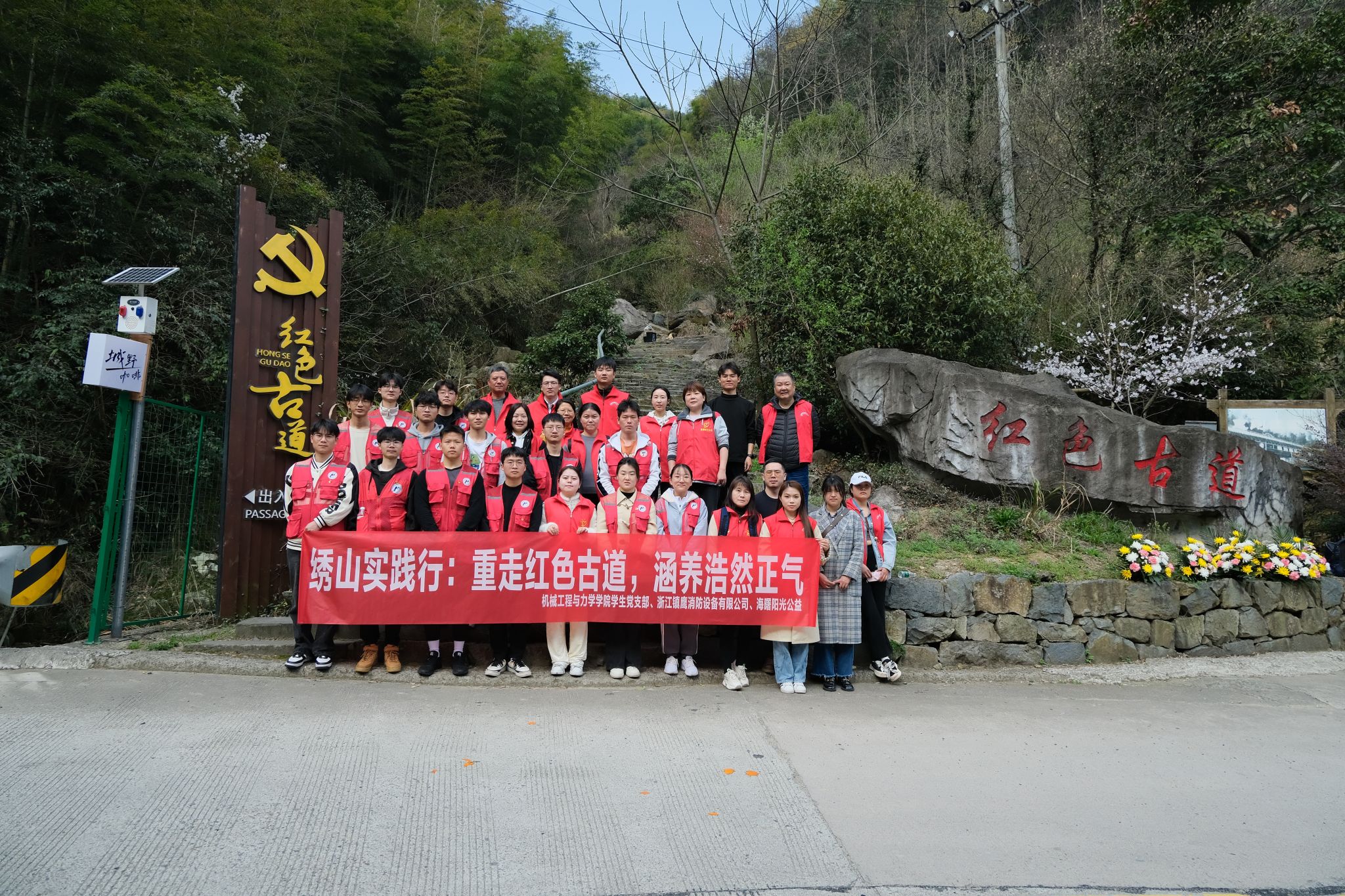 学生党支部联合浙江镇鹰消防设备有限公司和海曙阳光公益展开“绣山实践行:重走红色古道,涵养浩然正气”主题党日活动,本次活动邀请机械工程研究生第五、六、七党支部党员和团员共十余人参加。