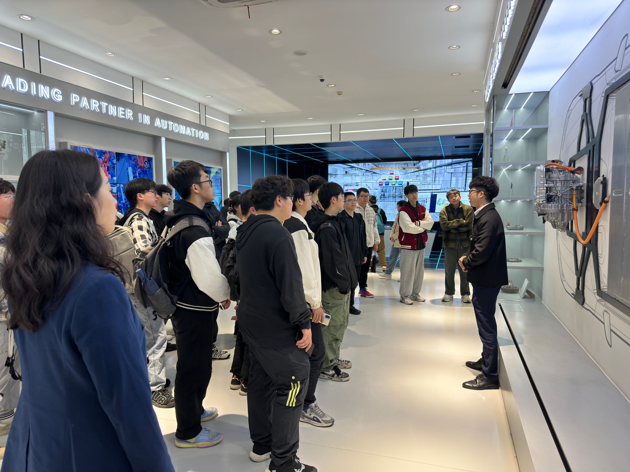 活动伊始,在均普智能人力资源部的陪同下,师生们参观了该公司的智能厂区展厅,听取了鲍静撑经理和于超经理对公司的历史沿革、发展情况、业务范围等内容的介绍;在企业机械设计经理的带领和讲解下,实地走进厂区的自动化生产线,进一步深入学习了解厂区的先进设备、工作管理制度与环境等。期间,双方还在会议室内进行座谈。交谈中,介绍了与宁大等在甬高校长期合作开展的暑期长周期实习项目,反馈在企工作的学院校友的发展情况,并就师生关心的实习周期安排、毕业设计、福利待遇、晋升通道等内容进行了交流互动。
