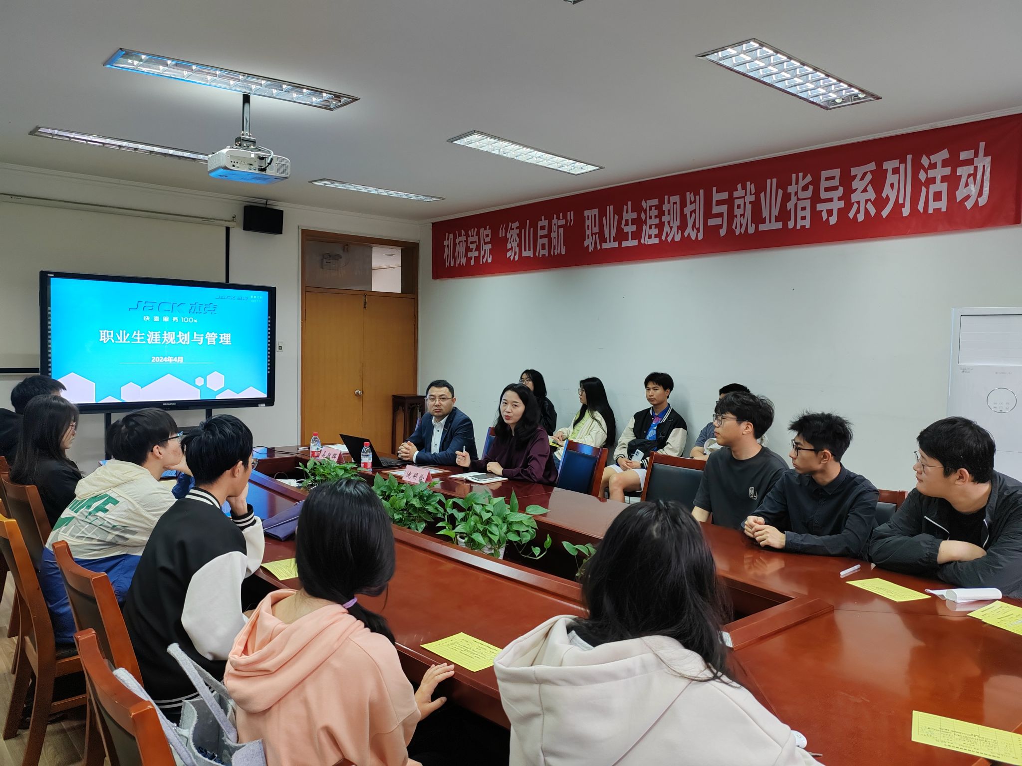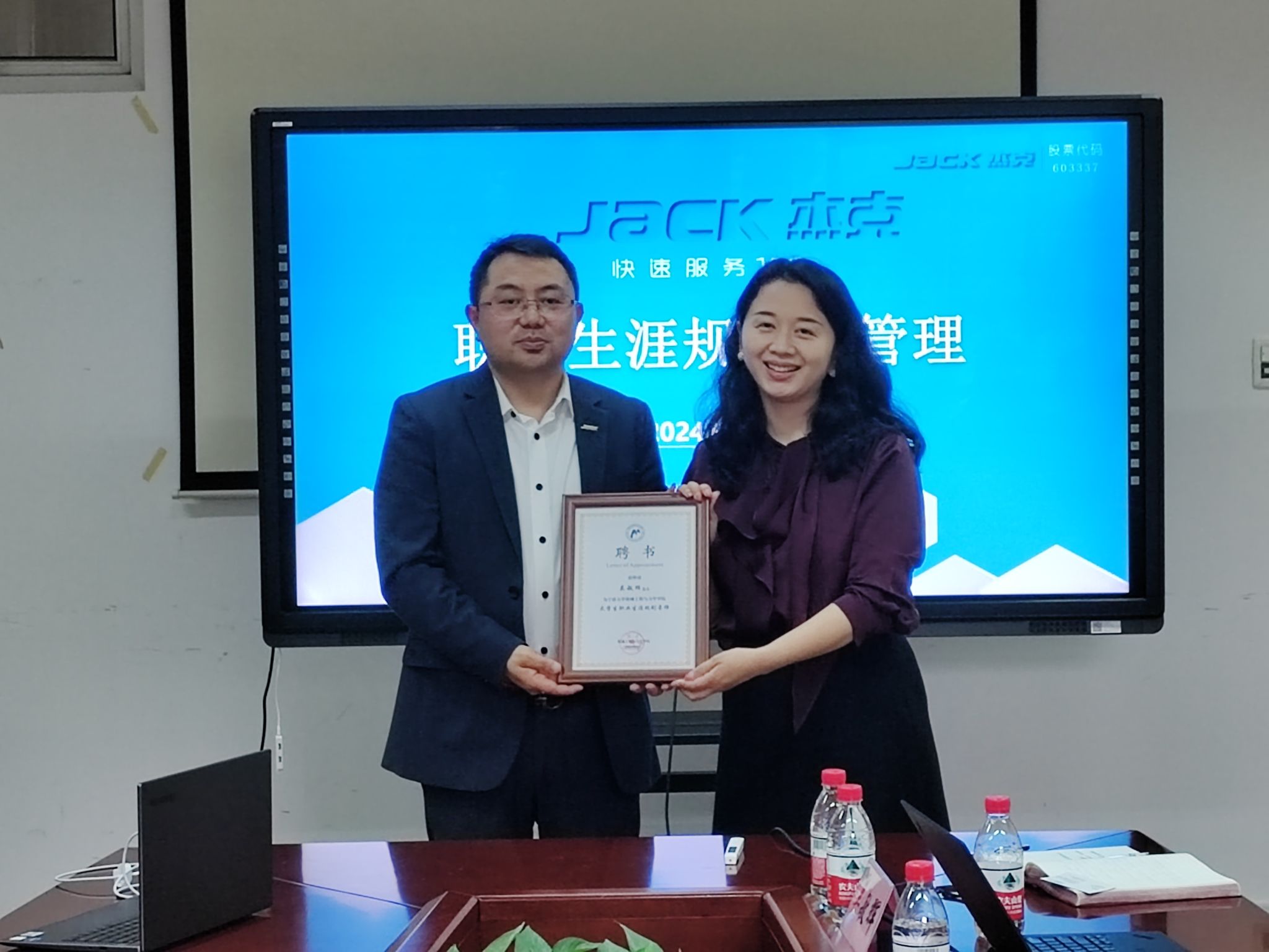 会议上,沈妍伶副书记对吴敏辉总经理一行的到来表示欢迎,详细介绍学院的历史发展情况,专业设置、学生人数规模等,彭文飞副院长围绕研究生教育培养、地方服务开展情况等内容进行阐述,表明与企业在学生实习就业、毕业设计指导和技术研发等方面的合作潜力。吴敏辉总经理对学院的热情接待表达感谢,并介绍了杰克股份的历史概况、发展沿革、业务范围、产业布局和企业文化等,希冀与学院达成深度全方位的合作,并诚邀学院领导师生莅临企业参观指导。同时,受学院邀请,4月17日上午,吴敏辉总经理还以《职业生涯规划与管理》为题,向学院学生开展职业生涯规划指导讲座,并受聘担任学院职规指导教师。沈妍伶副书记为其颁发聘书。