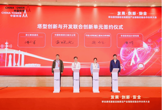4月26日,中国铁塔浙江省分公司在杭州召开移动通信基础设施建设产业强链优链合作伙伴大会。大会以“发展·创新·安全”为主题,共同探索移动通信基础设施产业链融通发展路径。