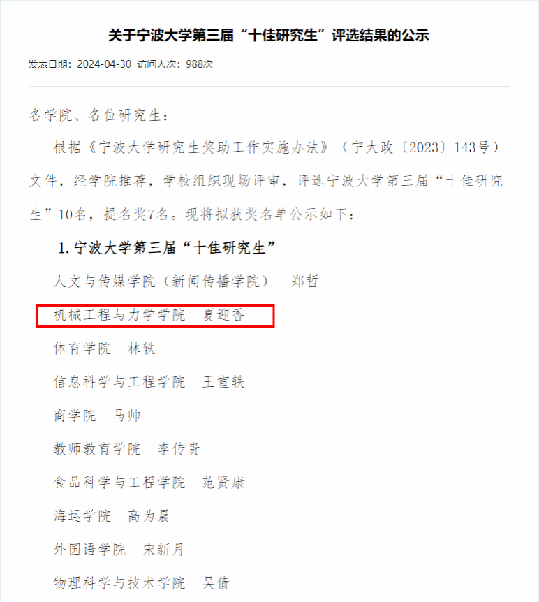 第三届“十佳研究生”10名,提名奖7名,51吃瓜网