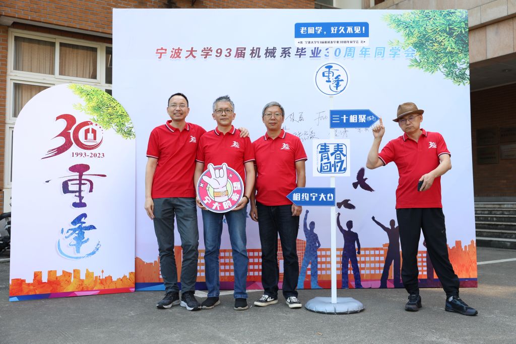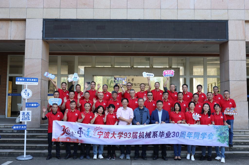 活动伊始,校友们来到机械学院绣山工程楼前汇合,互相寒暄家长里短,领取了自己那份30周年小礼物,在大大的签名墙上与分别多年的昔日同窗签下了自己的名字。“最棒的班!”30周年第一张合影时,他们喊出的话语透露着的是他们激动的心情,是30年依旧不变的宁大学子的自豪感。