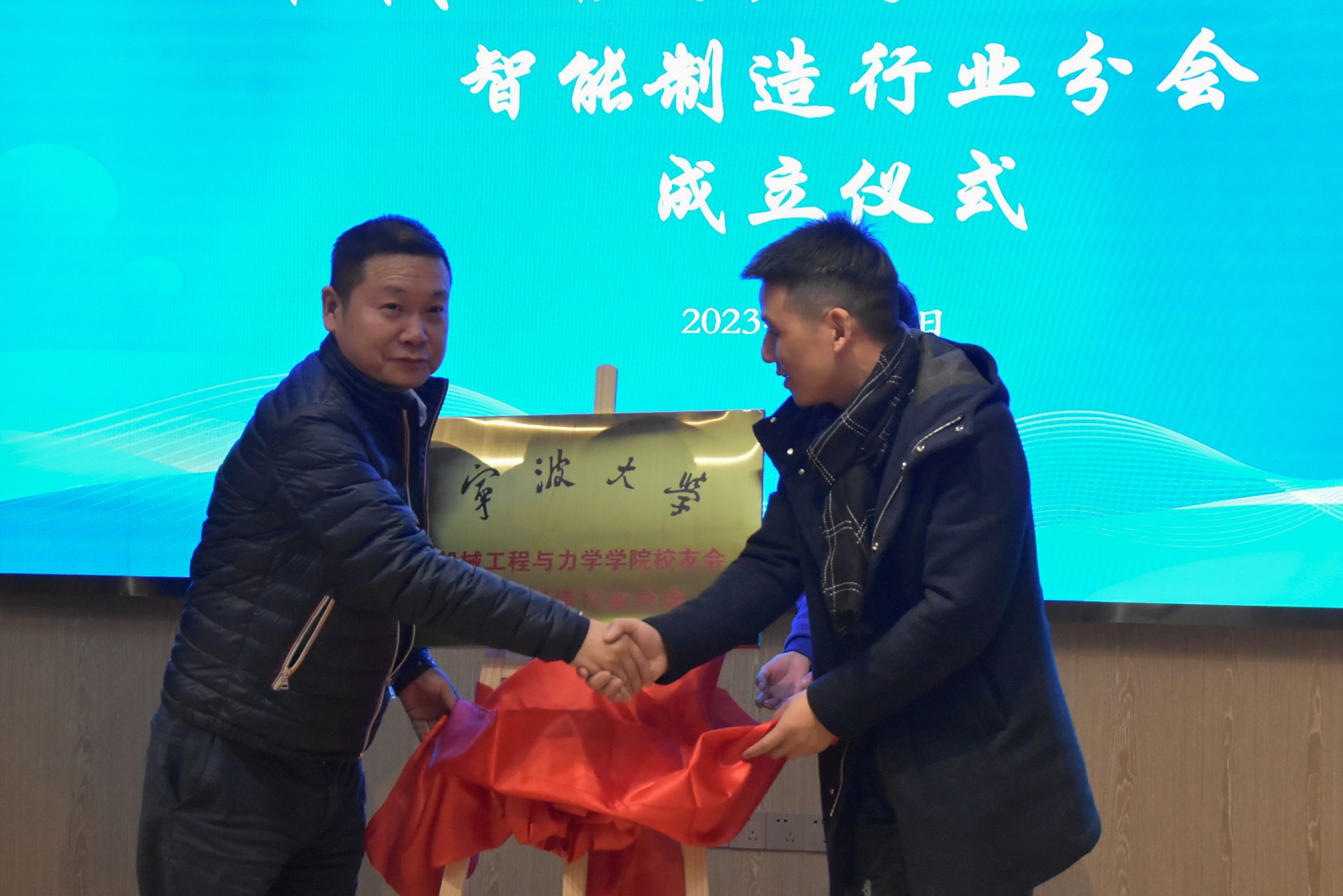 为适应行业发展趋势,深化智能制造行业校友之间的联系与交流,提升学校、校友企业在宁波智能制造行业的影响力,大会举办了宁波大学机械工程与力学学院校友会智能制造行业分会成立仪式,分会名誉会长、1988级校友乐晓东,分会执行会长、1998级校友李杰共同上台揭牌,王智腾为分会授予会旗。