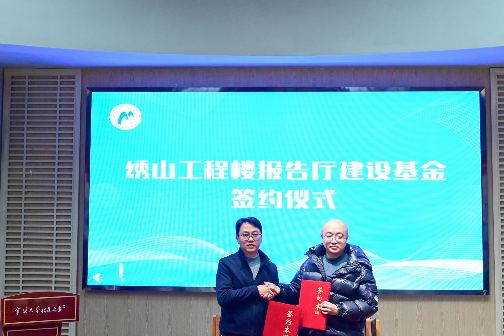 今年12月,为营造绣山工程楼更优雅、现代的学术交流舞台,学院发起了绣山工程楼报告厅募捐倡议,校友们积极响应、慷慨捐资,成功筹集了35万元善款,成立了“绣山工程楼报告厅建设基金”。大会上,2010级机械硕士研究生龚文炜作为校友代表与学院党委书记王智腾共同签署了捐赠协议书。李国平老师为王桂强等基金主要捐赠人颁发捐赠证书。