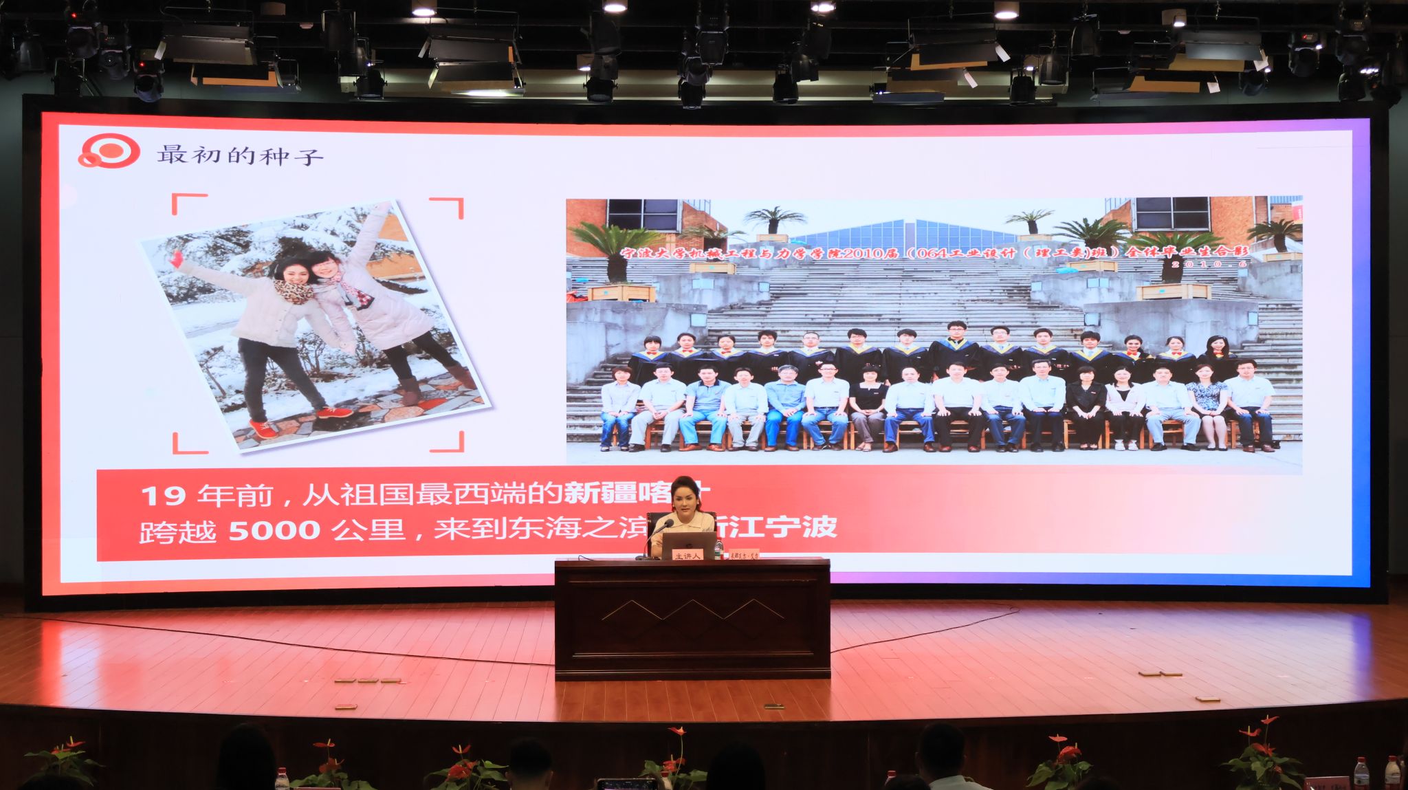 6月19日,宁波大学机械工程与力学学院2025届毕业生的最后一堂思政课,迎来了一位特别的“老师”——学院2006级工业设计专业校友、宁波职业技术学院学生处副处长、学工部副部长米娜瓦尔·艾力。这场由学院联合学校“风华同芯”工作室精心策划的课程,为毕业生的行囊注入了信念的力量与温暖的牵挂。