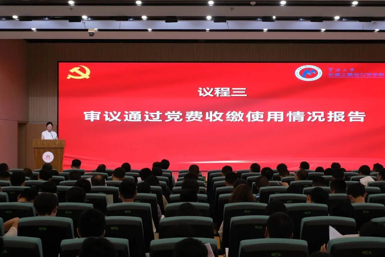 6月21日下午,中国共产党宁波大学机械工程与力学学院委员会第五次党员大会在朱学林报告厅隆重举行。会议由学院党委副书记、纪委书记沈妍伶主持,325名正式党员和30名预备党员参加大会,学校第九考察组成员全程列席大会。