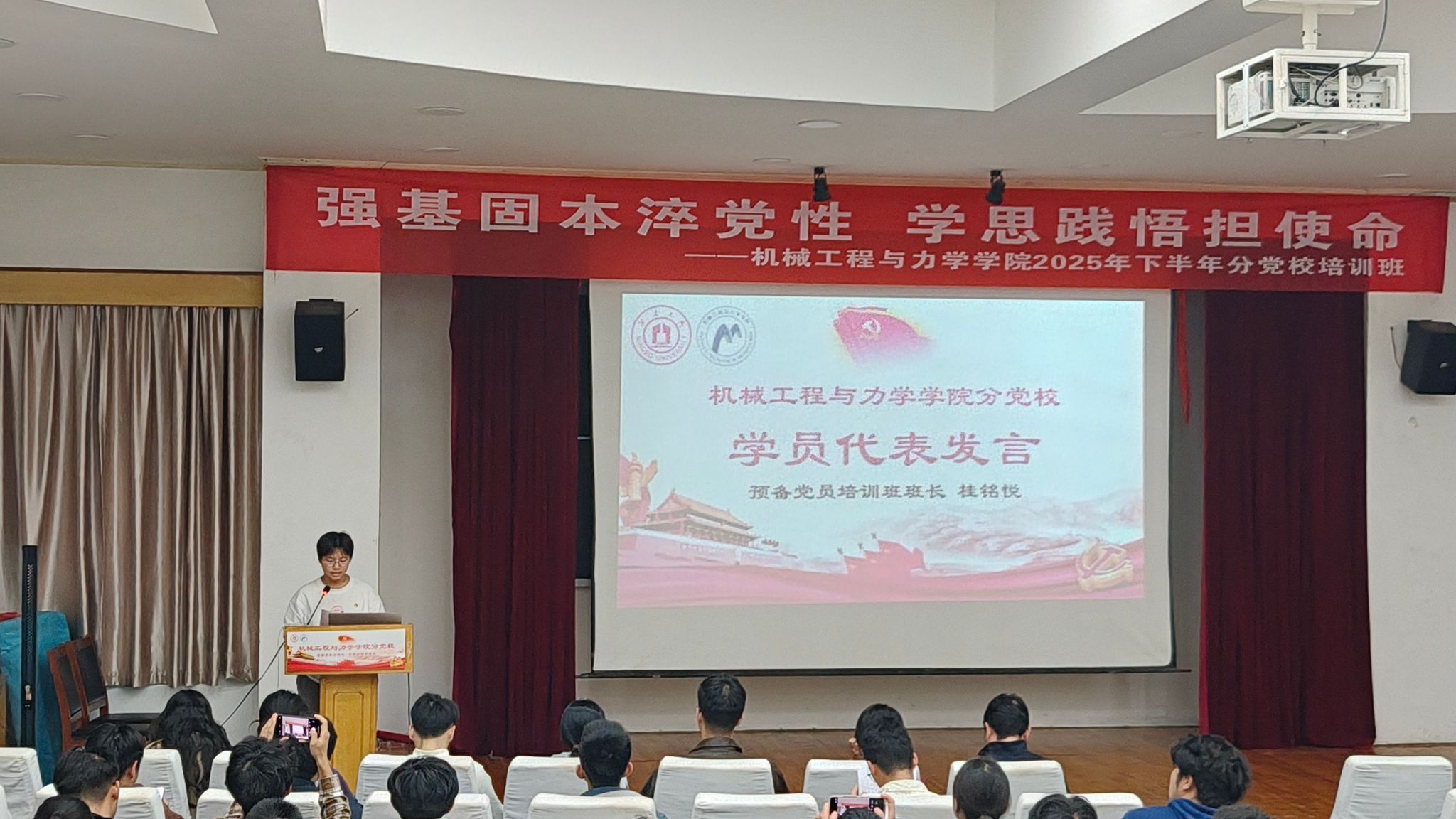 10月29日,机械工程与力学学院2025年下半年分党校顺利开班,各学生党支部书记、学院第33期预备党员培训班、第18期发展对象及第40期积极分子培训班学员参加,开班仪式由学生党建中心指导老师刘明禹主持。