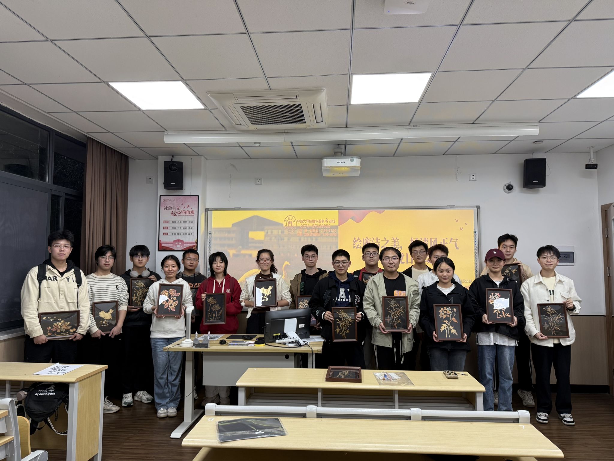 为进一步深化支部党风廉政建设内涵,积极响应学校纪委号召,弘扬廉洁文化的核心价值观念,并切实增强支部党员的廉洁自律意识与行动能力。宁波大学机械工程与力学学院智能制造工程与车辆工程专业本科生党支部与工程力学专业本科生党支部于11月13日下午联袂举办了“绘廉洁之美,扬清风正气”主题党日活动。此次党日活动以创作非物质文化遗产工艺“烧箔画”为载体,旨在向学生党员传达清正廉洁、自律自强的理念。