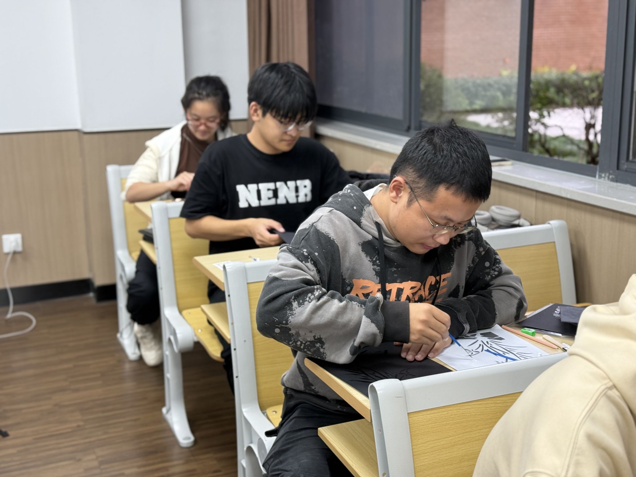 活动伊始,智能制造工程与车辆工程专业本科生党支部党员严丽云同志,为参与活动的党员们详细介绍了烧箔画这一传统工艺的历史沿革,并引导他们学习了烧箔画的制作步骤。党员们精心构思,创作出了竹子、莲花、兰花等蕴含廉洁意象的图案,以此象征清廉正直的高洁品德。从绘画、涂胶、贴箔到最后的清扫,一幅幅精美的烧箔画作品渐渐展现在众人面前。在制作烧箔画的过程中,党员们不仅加深了对廉洁文化内涵的理解与认同,还进一步坚定了对中华优秀传统文化的自信心与自豪感。