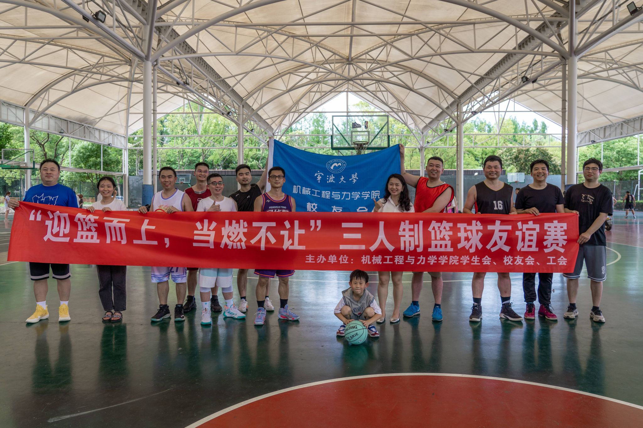 为加强校友与学院的密切联系,响应校友们参与学院文体活动的热烈呼声,2024年6月16日,机械工程与力学学院精心策划的“迎篮而上,当燃不让”三人制篮球友谊赛,在宁波大学李兴贵篮球场火热展开。此次活动由机械学院学生会、校友会、工会联合举办,吸引了四十余位校友、教师和同学们积极参与,新老宁大人欢聚一堂,共同感受篮球运动的魅力。