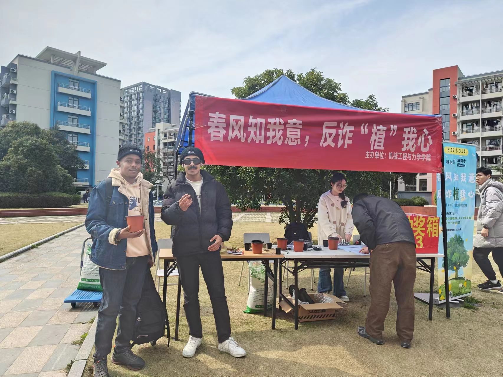 为切实增强广大同学爱绿护绿和反诈防骗意识,宁波大学机械工程与力学学院学生会联合本院留学生会开展“春风知我意,反诈植我心”春日特别活动,通过回答反诈消费问题,有效遏制电信网络诈骗,助力建设环境、网络“双绿”校园。