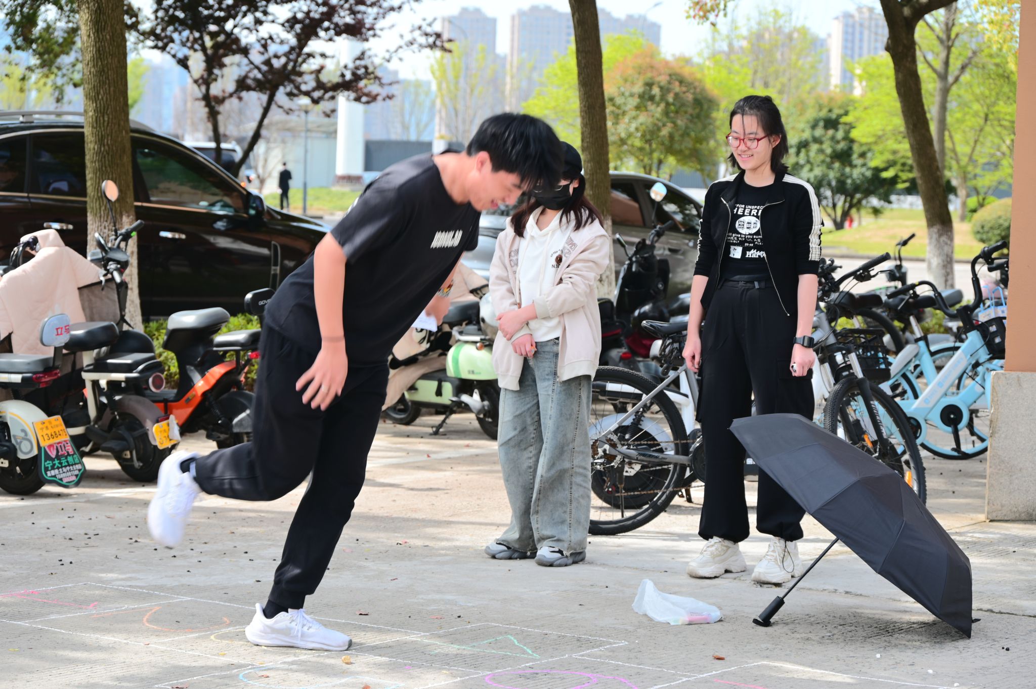 龙赛理科楼——跳房子:考验着同学们的平衡感和反应速度。