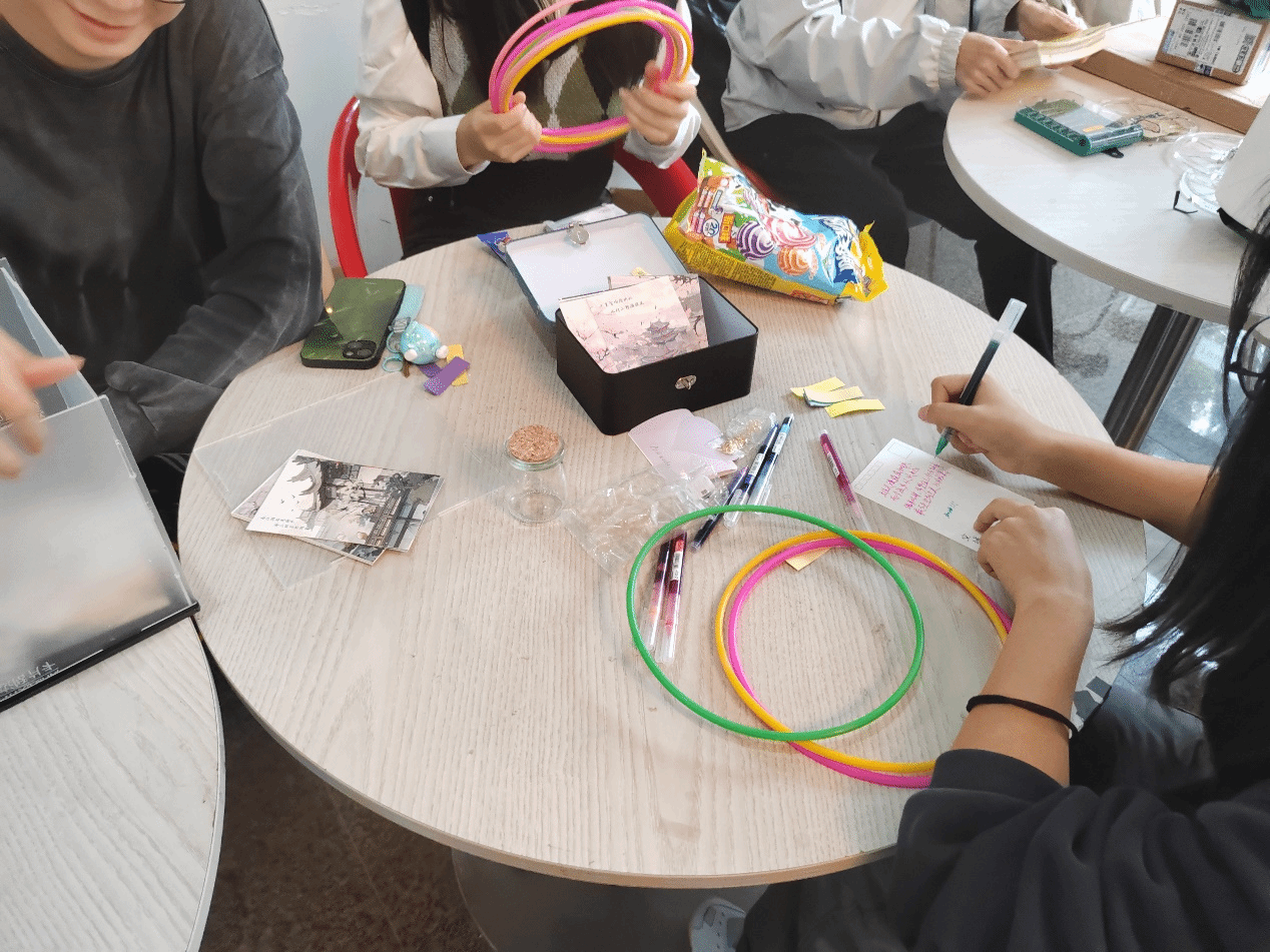 精美的明信片搭配彩色水笔,成为了表达内心世界的小画板。同学们纷纷写下心中的困惑或是近来的烦恼,小心翼翼地将其投入标有“解药”的小盒子,期待着那份未知却真挚的帮助与回应。另一边,热情的学长学姐们耐心聆听,结合自身的经历与智慧,为每一封寄存的烦恼寻找专属的“处方”。