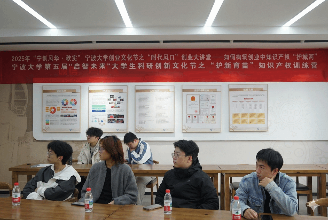 为普及知识产权知识,提升学生创新保护意识与实操能力,助力学术研究与职业发展,11月26日,机械学院成功举办2025年“宁创风华·秋实”宁波大学创业文化节之“时代风口”创业大讲堂--如何构筑创业中知识产权“护城河”宁波大学第五届启智未来大学生科研创新文化节之“护新育苗”知识产权训练营专题讲座。本次活动特邀学院工程力学专业2002级校友、宁波市甬远专利代理有限公司总经理章松伟担任主讲,系统解析专利的核心价值、类型划分、申请流程及关键技巧,为同学们带来一场内容丰富、实用性强的知识盛宴。