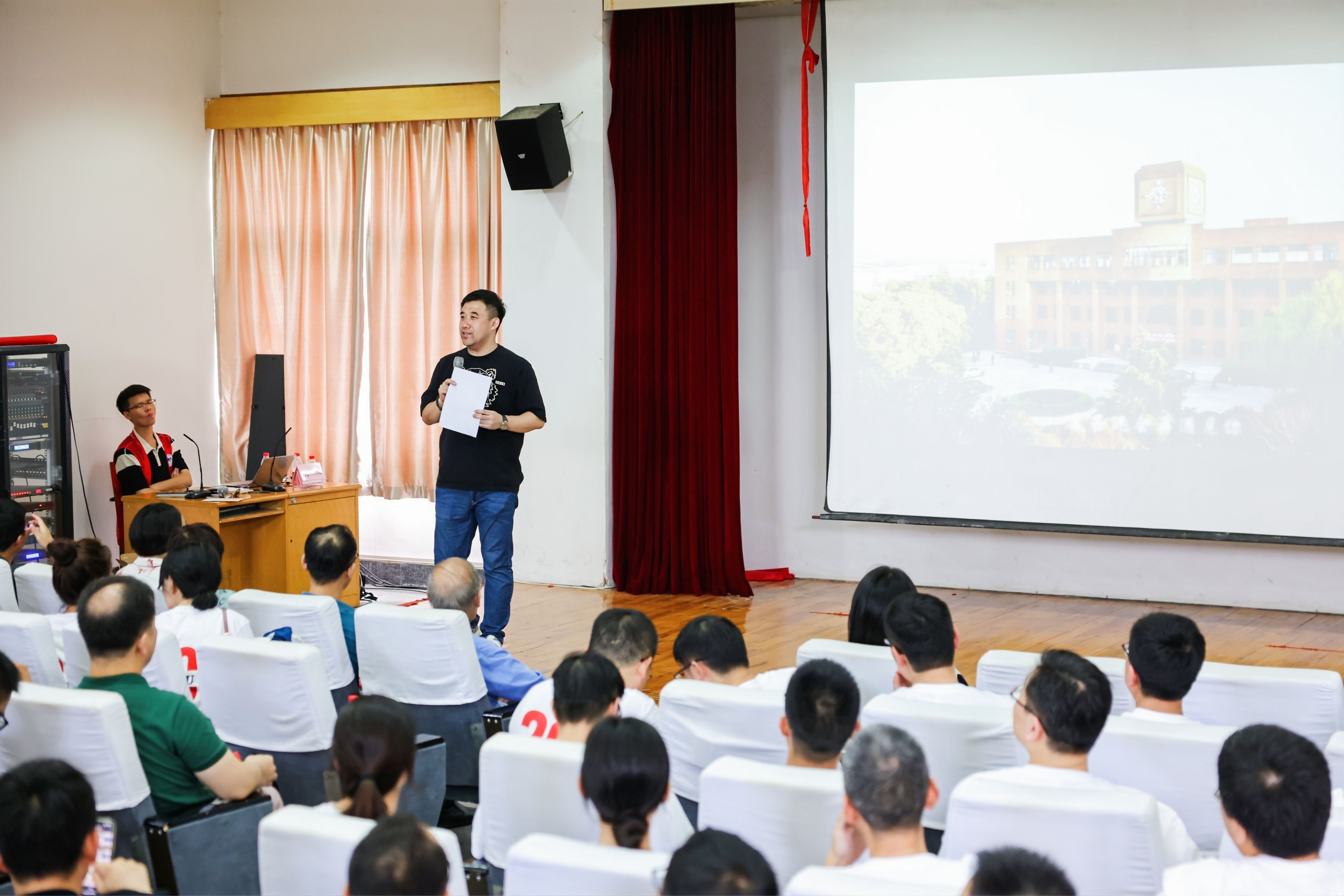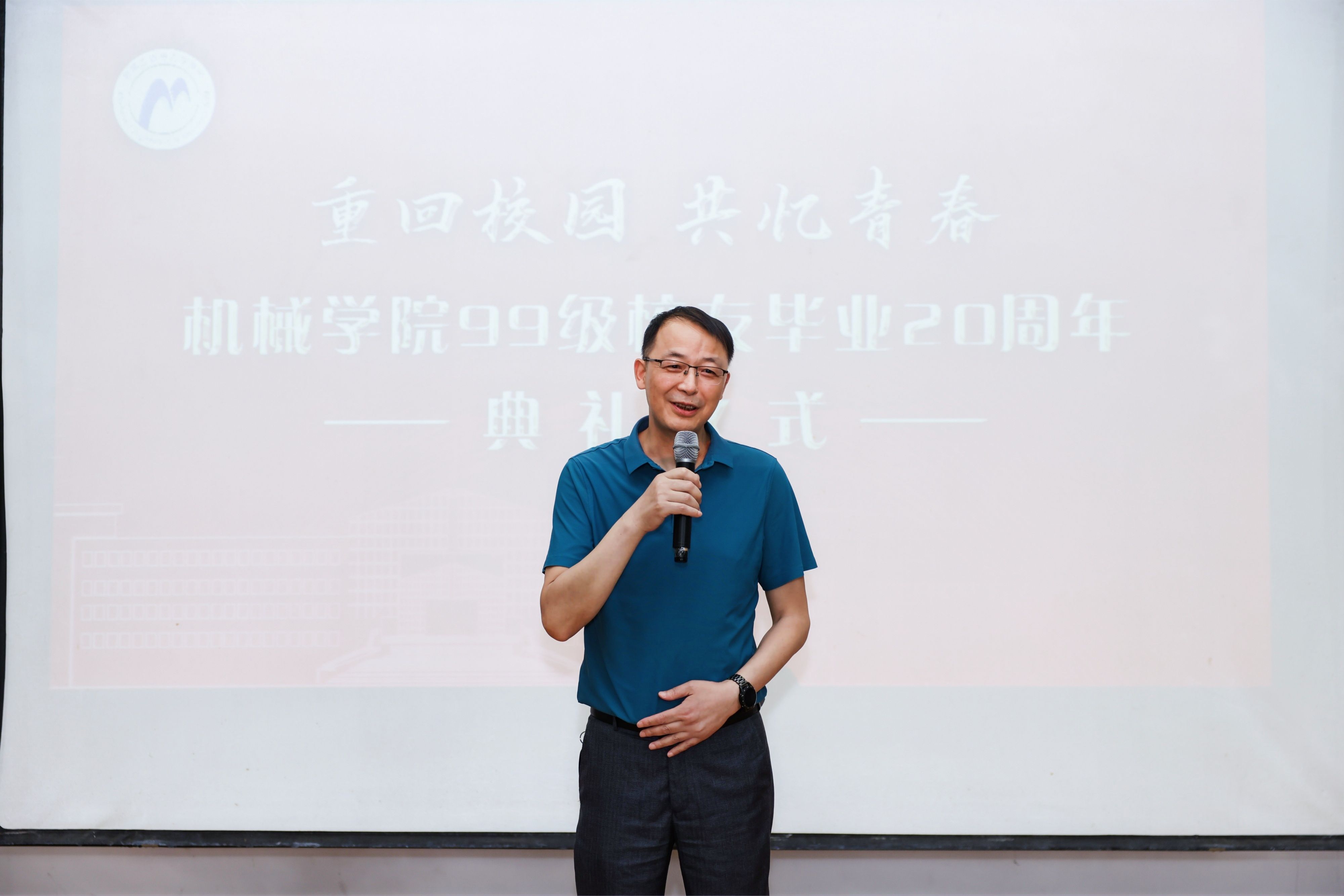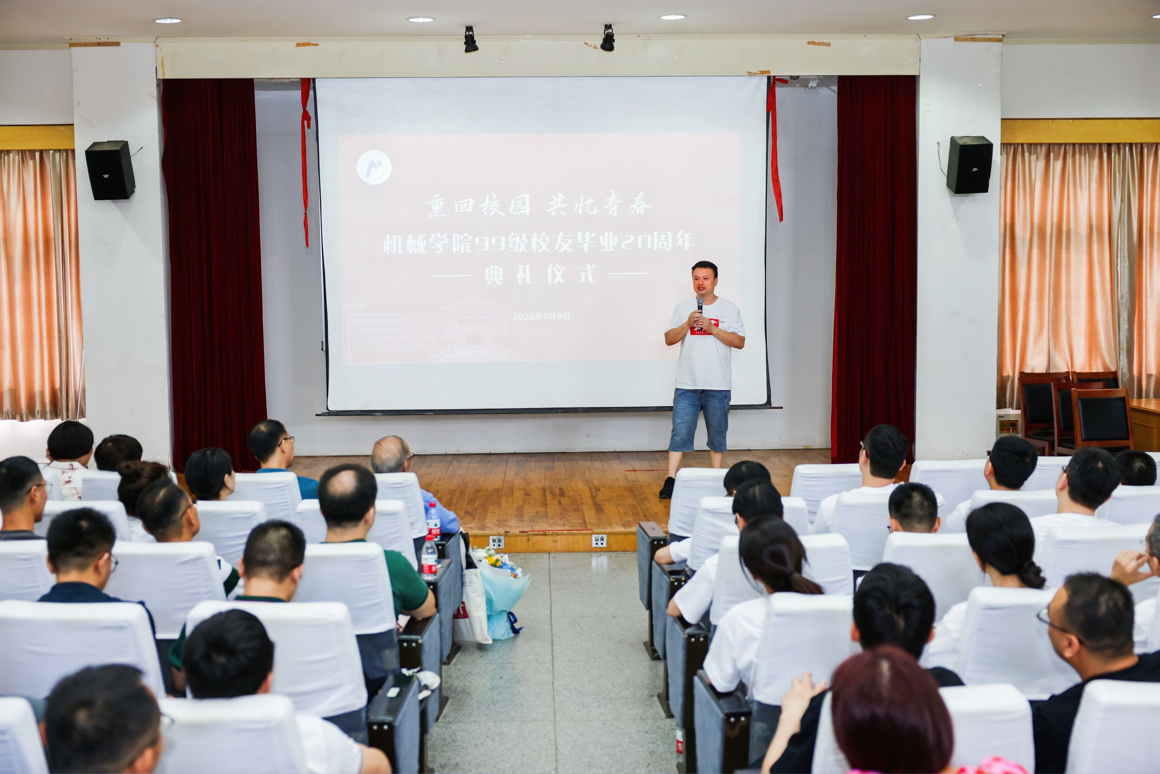 8日下午,绣山工程楼报告厅内温情暖暖、掌声不断。学院领导王智腾书记、沈妍伶副书记,教师代表方志梅、蒋亚楠、张小芳、费春华、宋臻、常云发出席了本次机械学院99级校友毕业20周年典礼, 992班姚文俊校友担任了主持人。