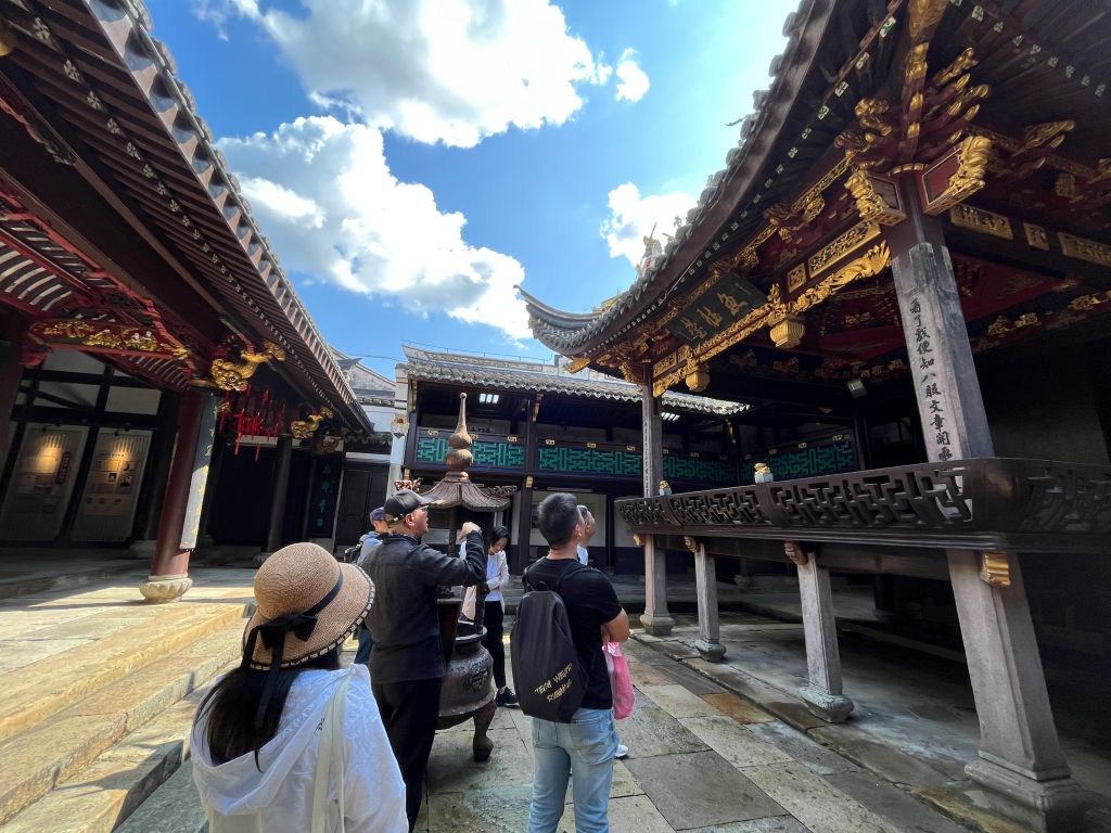 在结束了小普陀风景区的行程后,校友们一同前往附近的王安石庙参观,展开了一段文化之旅。这座庙宇是为了纪念北宋著名政治家、思想家、文学家王安石而建。当地陈老师详细讲解了庙宇的历史和王安石在鄞县时对人民所做出的重要贡献。校友们听得津津有味,对王安石的卓越之功有了更深刻的了解。