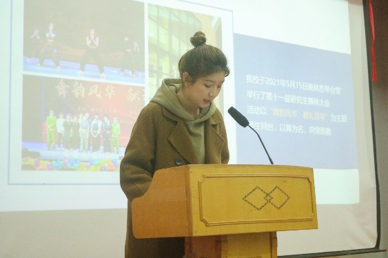 由于疫情影响,邀请团委书记褚慧丽线上发表讲话,褚书记对研会、研会成员以及全体研究生同学提出几点希望,她要求研究生会要找准组织定位,明确组织职能;全体研究生同学既要着眼当下,又要目光长远,积极应对未来的各种挑战。校研会代表曹越同学线上发表讲话并对本次大会顺利召开表示祝贺。