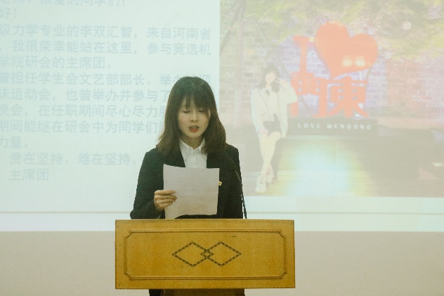 研会章程》,第十届学院研究生会主席卢钦盈同学宣读了第十届研究生会工作报告,随后大会审议并通过了第十一届研究生委员会秘书长建议名单,委员会组织构成报告,大会选举办法,大会总监、计票人,监、计票人建议名单。