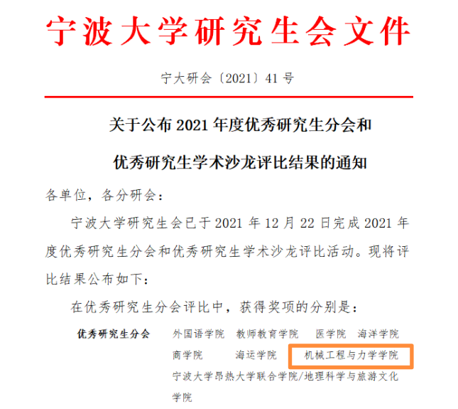 新突破!机械学院研究生会荣获2021年度优秀分研会称号