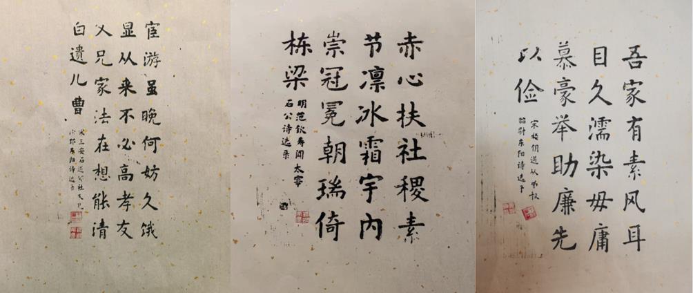 随后,同学们体验雕版印刷,把“赤心扶社稷,素节凛冰霜”“俯仰怀唐风,水与人俱清”“人心正畏暑,水面独摇风”等王安石、史浩、范钦等名臣的清廉诗句印在纸上,在传承中华优秀传统文化的同时更是将清廉刻在心中。