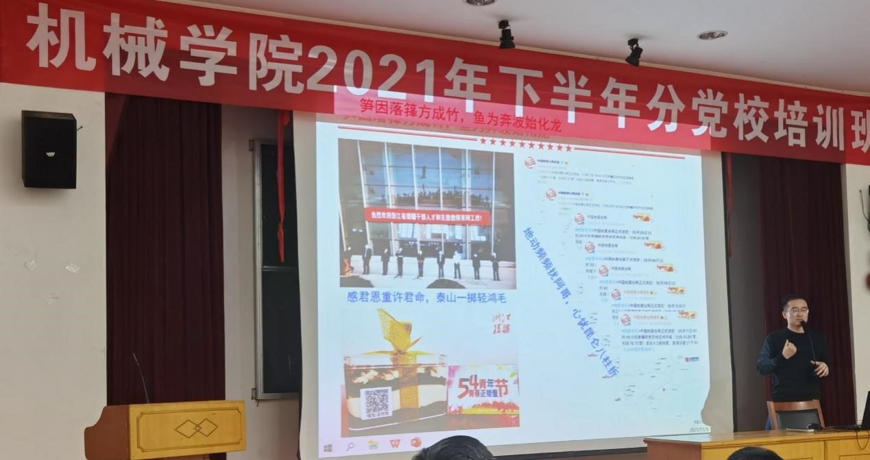 11月6日下午,机械学院在绣山工程楼三楼报告厅举办了“援疆路上悟初心 千里之行话担当”主题教育讲座,邀请刚刚结束两年支教工作的许孟辉老师分享他援疆路上的初心故事和使命担当,学院200余名党团员在现场聆听了许老师的分享。