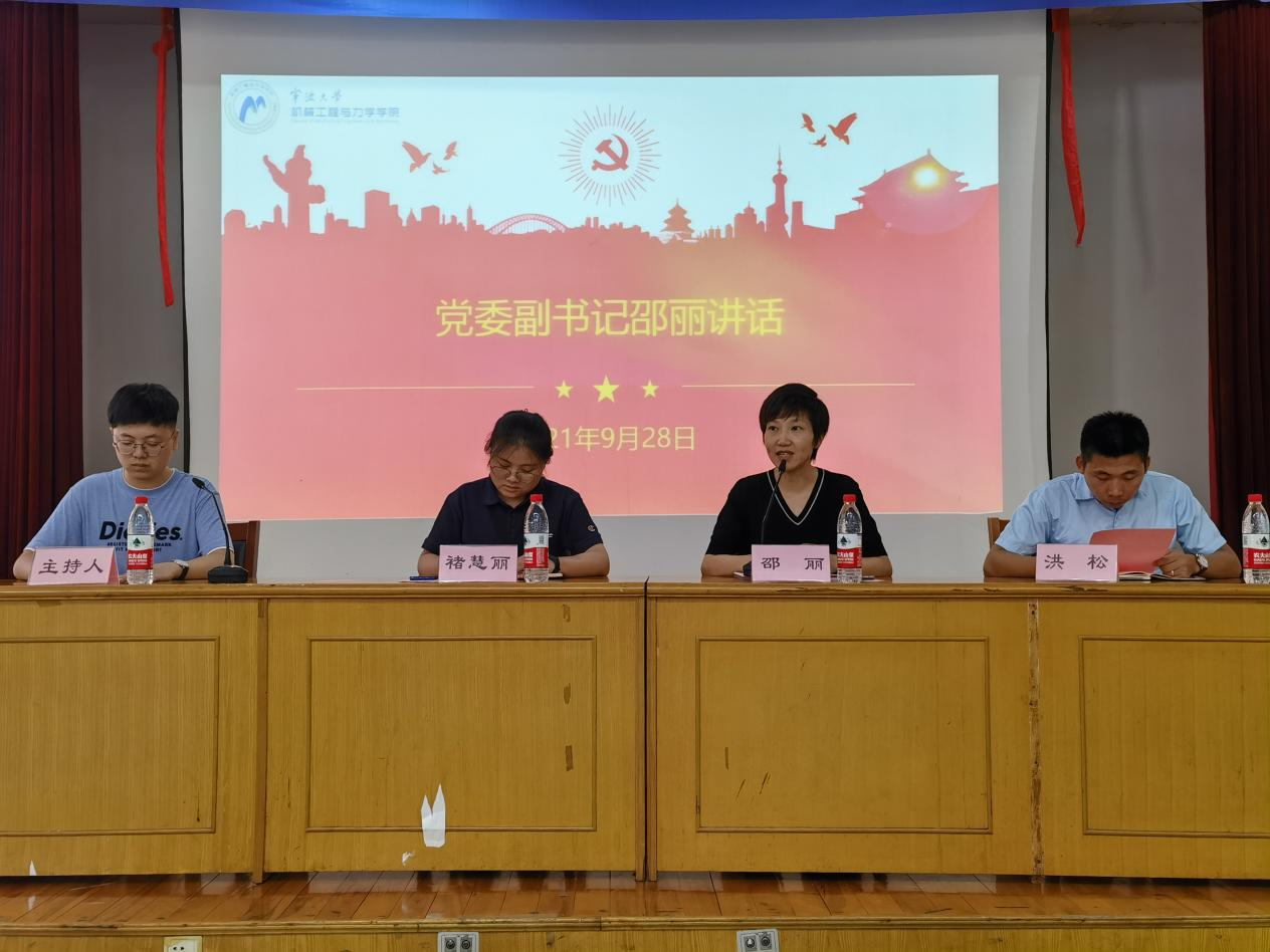 9月28日中午,机械学院第三届学生党建中心换届大会在学院三楼报告厅举行。学院党委副书记邵丽、学工办/研工办主任洪松、学院团委书记褚慧丽、学院第三届、第四届学生党建中心全体成员,以及部分学生党员参加了会议。
