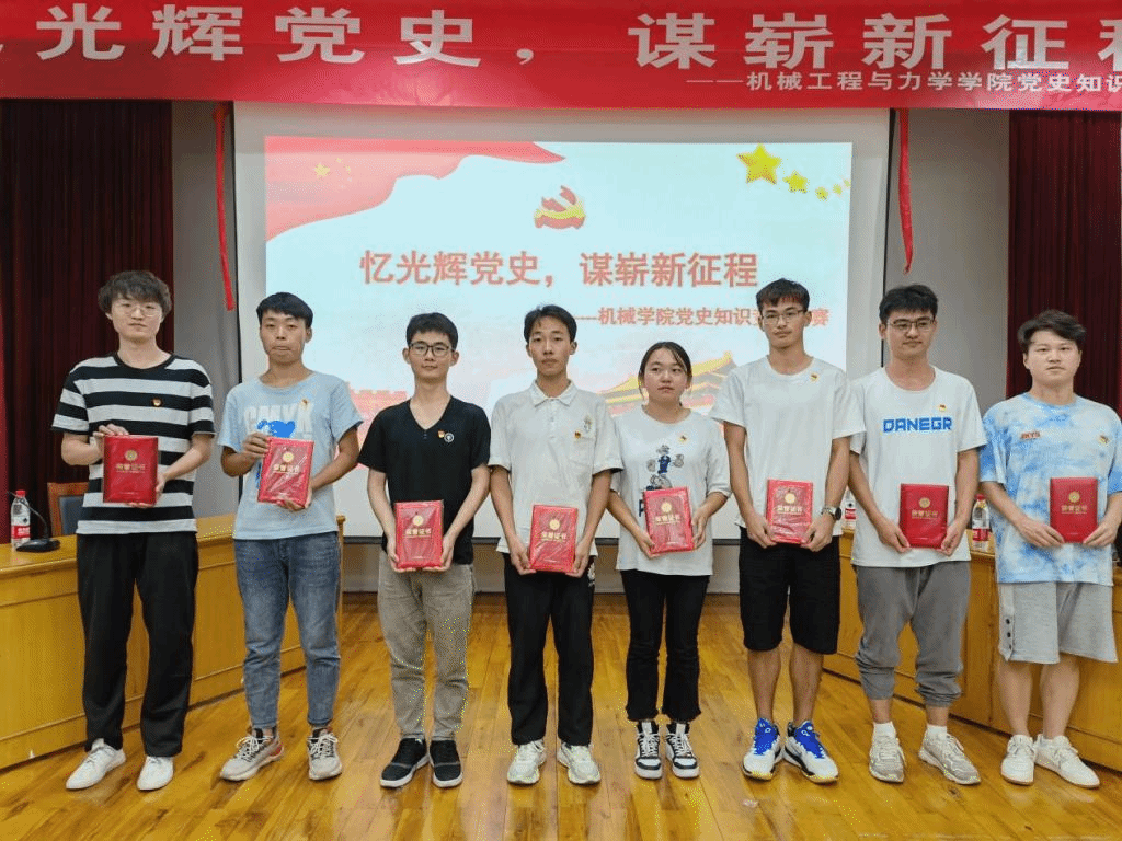 机械学院党委主办,机械学院学生党建中心承办的“忆光辉党史 谋崭新征程”党史知识竞赛于9月28日晚在绣山工程楼三楼报告厅举行。此次竞赛共有近20支队伍报名参加,覆盖学院2021级所有新生。经过前期的初赛、复赛,当天共有6支队伍进入决赛。