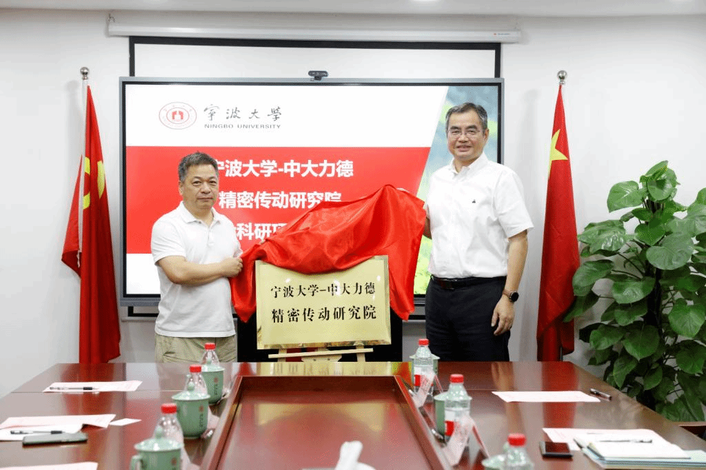 随后,宁波大学副校长姚菊明与中大力德智能传动股份有限公司董事长岑国建为宁波大学-中大力德精密传动研究院揭牌。