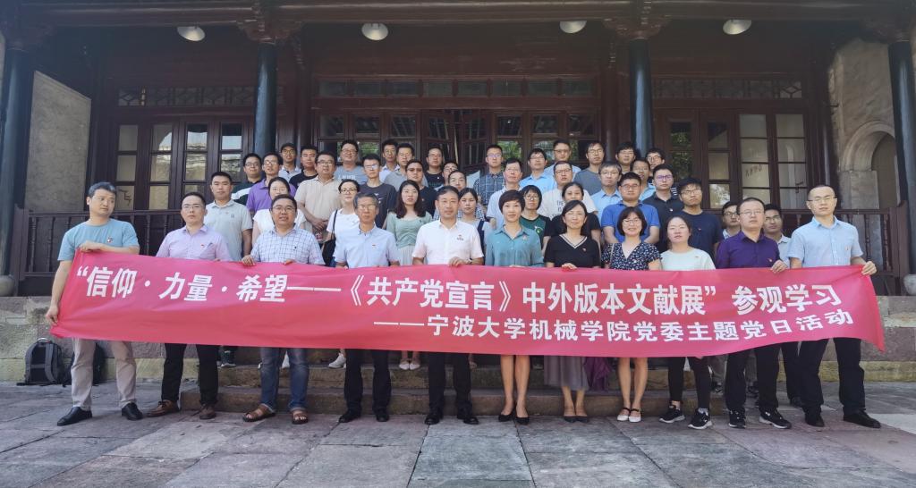 为推进党史学习教育走深走实,庆祝建党百年华诞,6月25日,机械学院党委领导班子和教师党员共50余人赴天一阁开展“信仰·力量·希望——《共产党宣言》中外版本文献展”参观学习活动。此次展览由中共宁波市委宣传部指导,宁波市文化广电旅游局主办,在天一阁·西园展出。