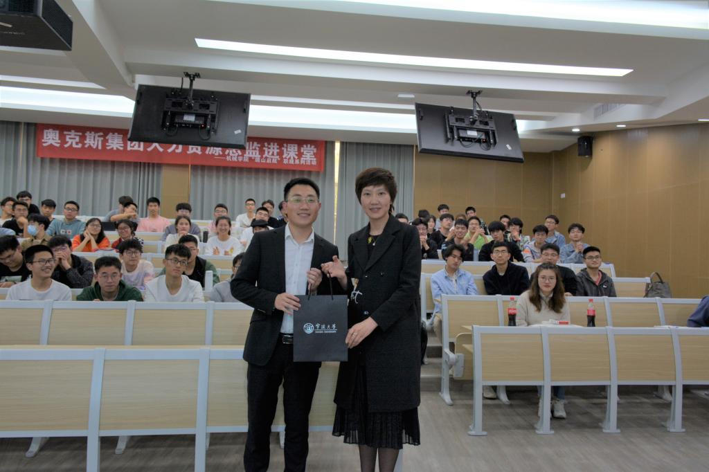 在“奥克斯集团人力资源总监进课堂”讲座中,何祎从当前大学生就业形势入手,分析了目前最受欢迎的互联网、地产、制造业、培训机构等行业的形势。随后,他为准备考研的同学提供了建议。他表示,同学们一定要结合自身定位,明确考研目标,利用SMART原则分析目标的可行性。之后,何祎分享了在奥克斯发展的宁大优秀毕业生的案例,以此说明在个人发展中,职业起点可能会与专业强相关,但发展的终点不一定与专业强相关。在互动环节中,何祎就如何成为优秀毕业生以及行业对于人才偏好与需求等职业规划方面的问题作出了解答与分享。