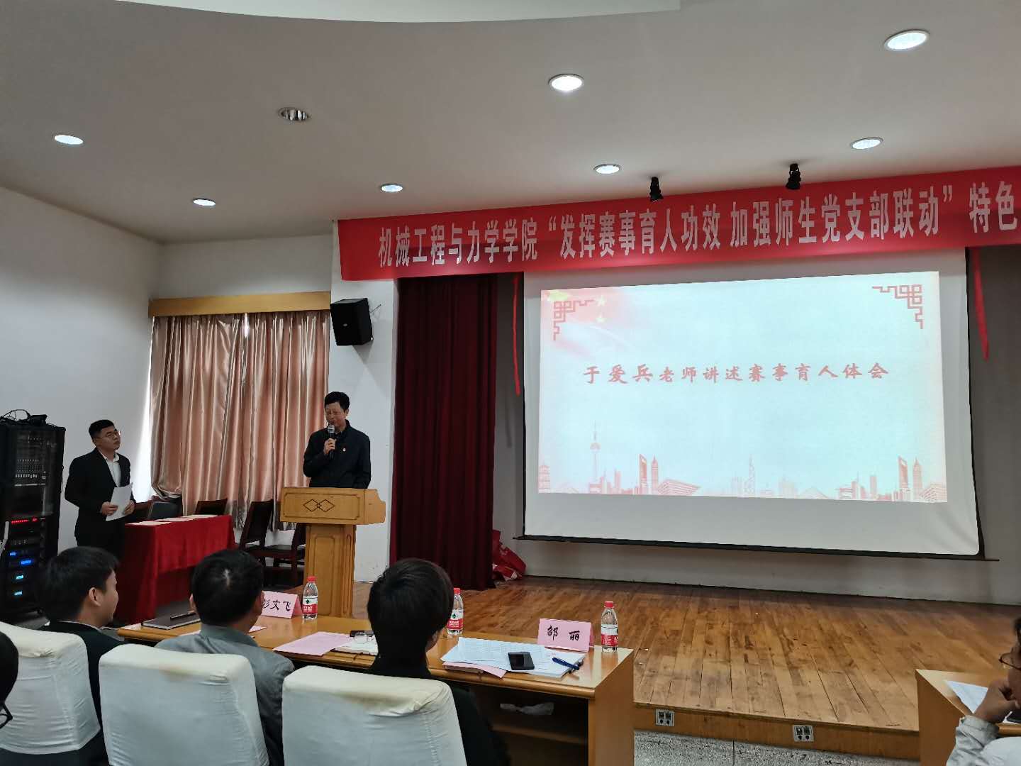 “最美导师”获得者,曾多次指导学生获得学科竞赛省级以上奖项的于爱兵老师,从科研能力增强和职场素养能力提升两方面向大家分享了自己的赛事育人心得。代表学校首次获得机械设计竞赛国赛一等奖的陈啸谷同学,讲述自己作为一名党员在团队中发挥作用的体会。活动现场,还进行了师生党支部联合共建51吃瓜网