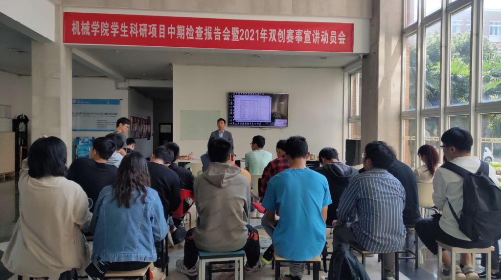 为充分了解学生科研项目进展情况,遴选优质项目参加来年双创赛事,10月28日下午,机械学院在绣山工程楼一楼大厅举行2020年学生科研项目中期检查暨2021年双创赛事动员宣讲会。活动邀请梁丹、张方圆、金育安、卢梦凯4位老师和2019年“挑战杯”国赛一等奖获得者朱帅同学担任评审嘉宾。